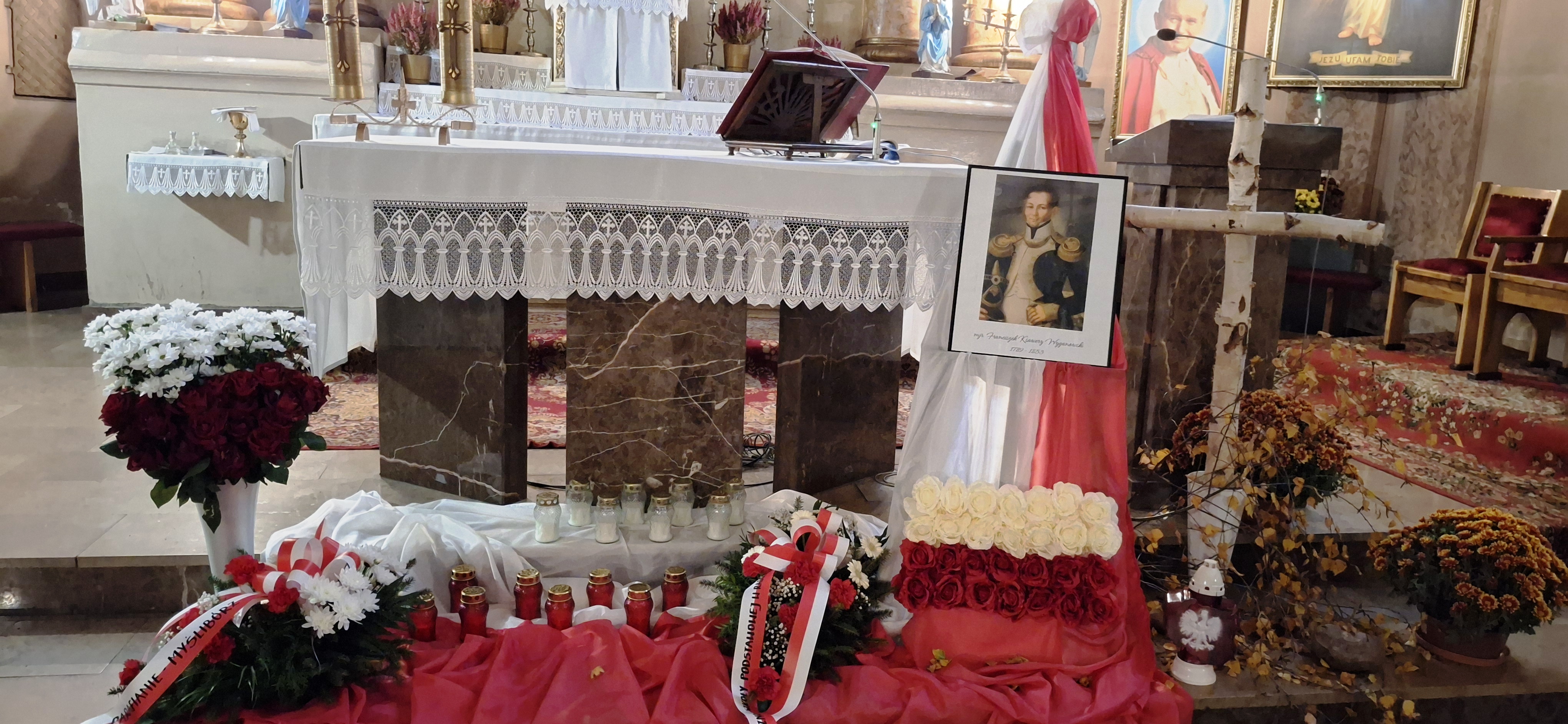 Przed rozpoczęciem Mszy Świętej odczytano notę biograficzną upamiętniającą zasługi wojskowe i patriotyczną postawę majora Franciszka Ksawerego Wyganowskiego .