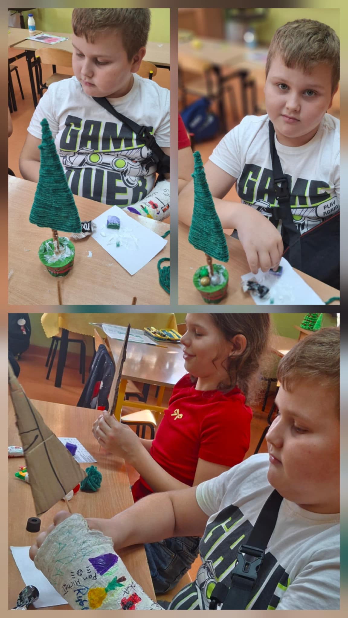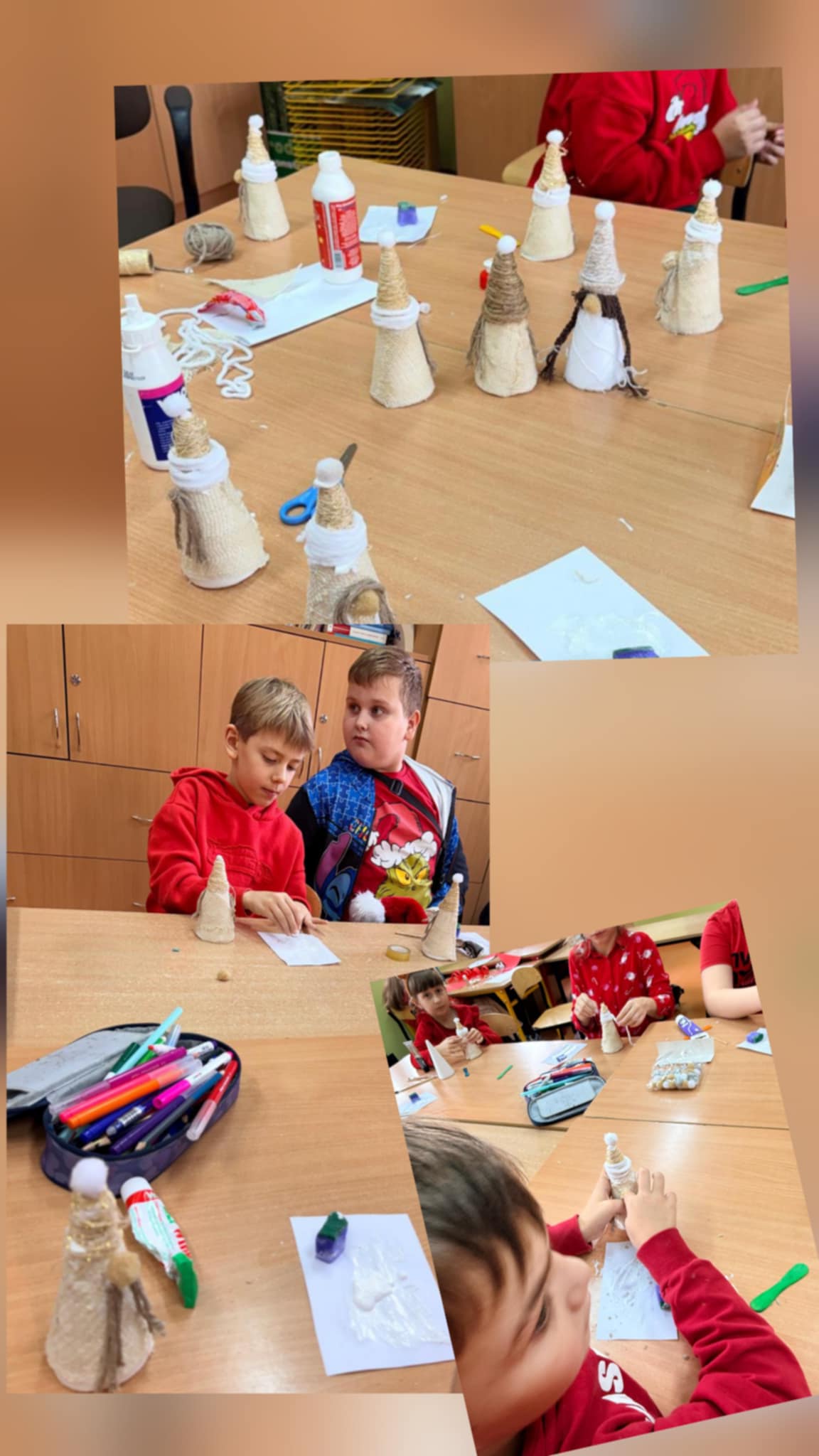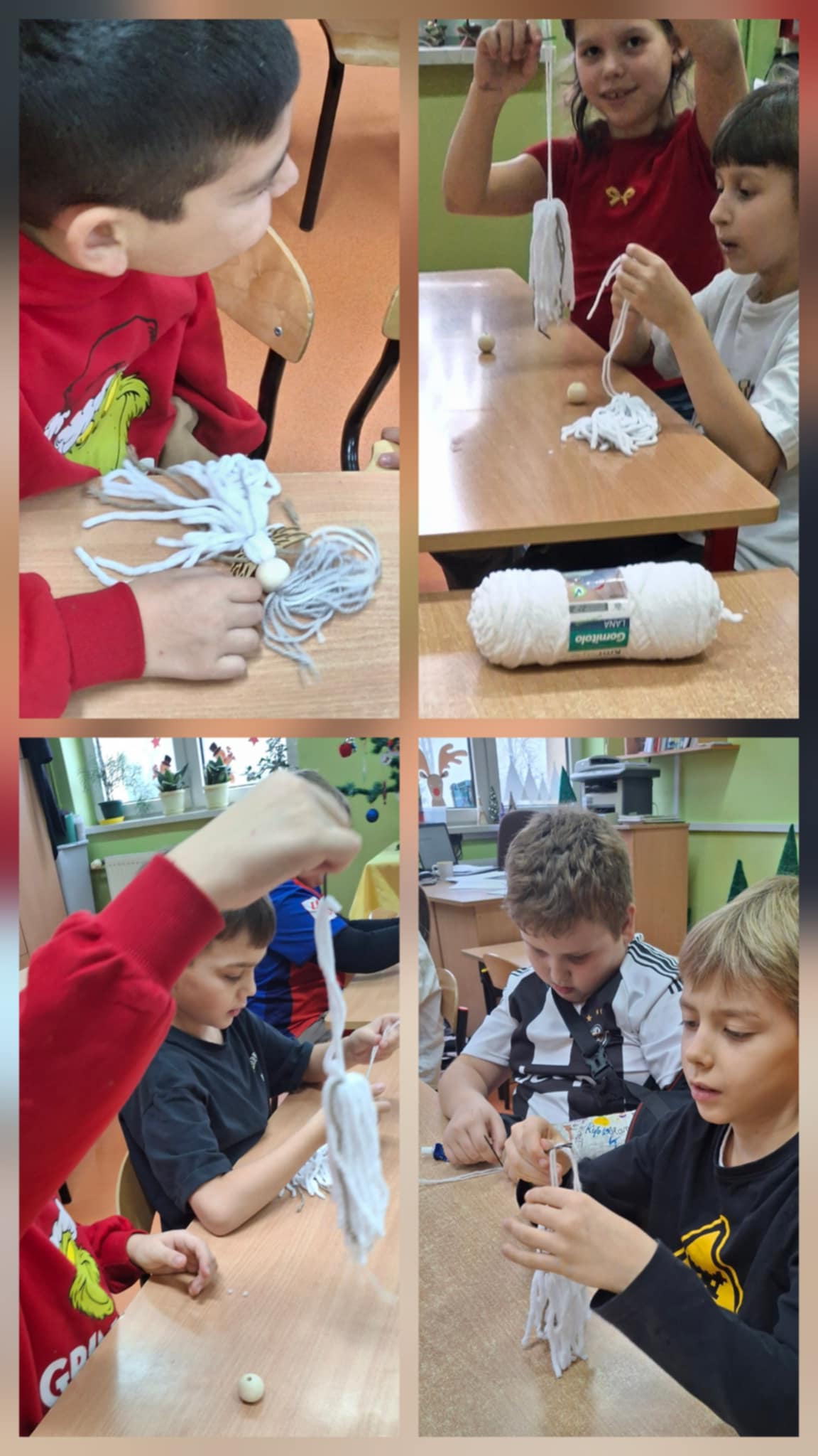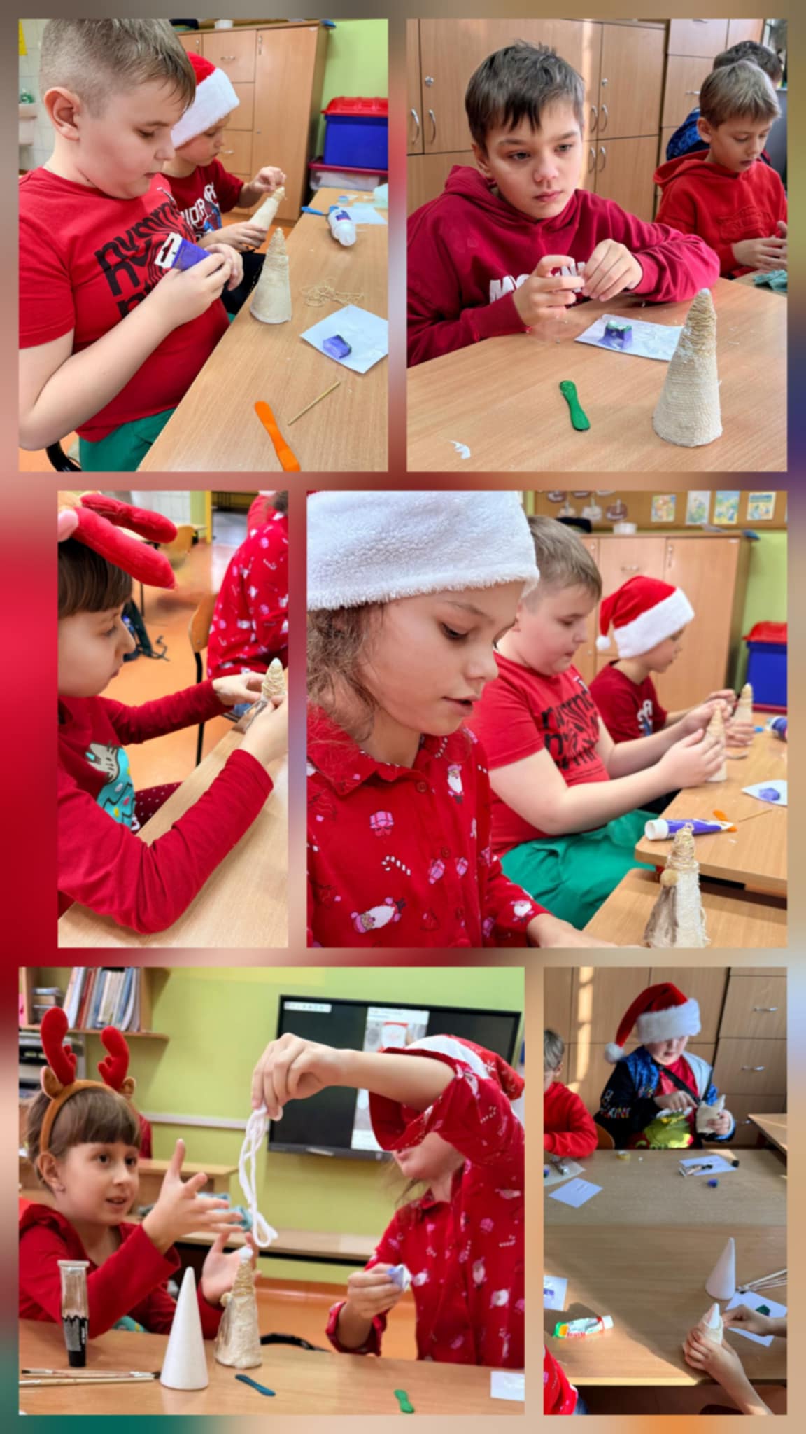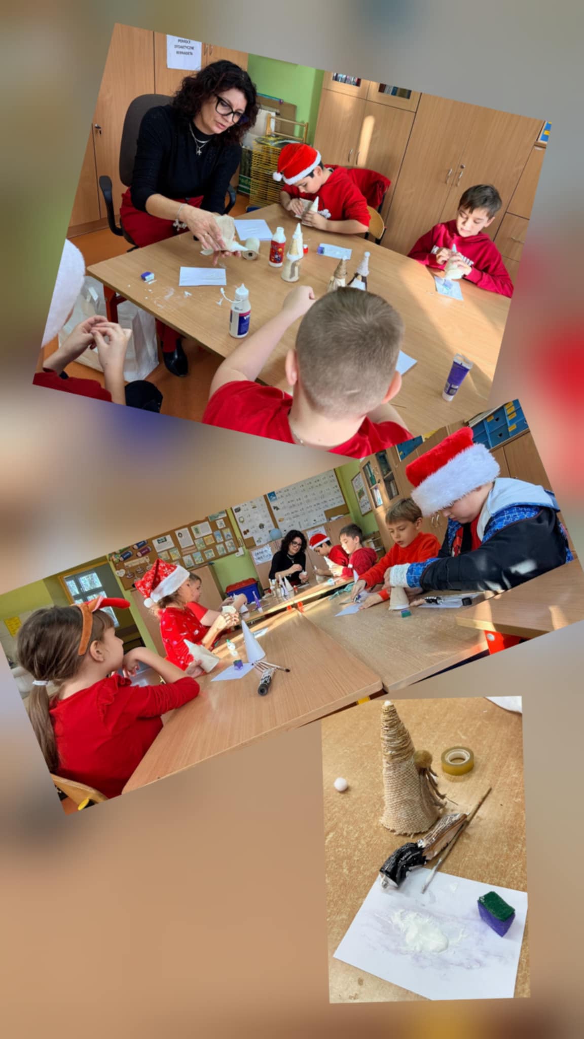Warsztaty były okazją do swobodnej ekspresji artystycznej, kształtowania wyobraźni oraz doskonalenia umiejętności współpracy w grupie. Uczniowie z dużym zaangażowaniem uczestniczyli w zajęciach, czerpiąc radość z tworzenia i odkrywania własnych możliwości twórczych. Świąteczna atmosfera sprzyjała budowaniu pozytywnych relacji oraz wzmacnianiu poczucia sprawczości i wiary we własne umiejętności.