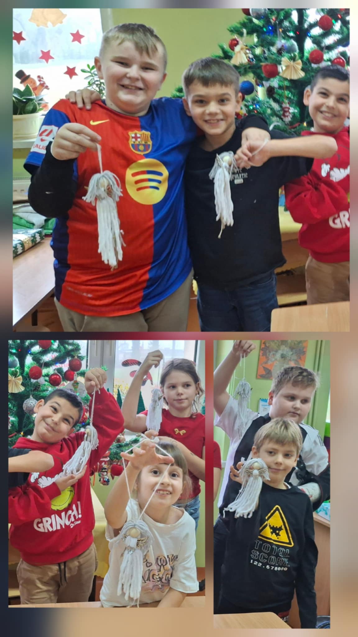 W ramach innowacji pedagogicznej „Laboratorium myślenia” nasi uczniowie w grudniu zamienili się w prawdziwych artystów i tworzyli wyjątkowe świąteczne prace: skrzaty, choinki oraz anioły.