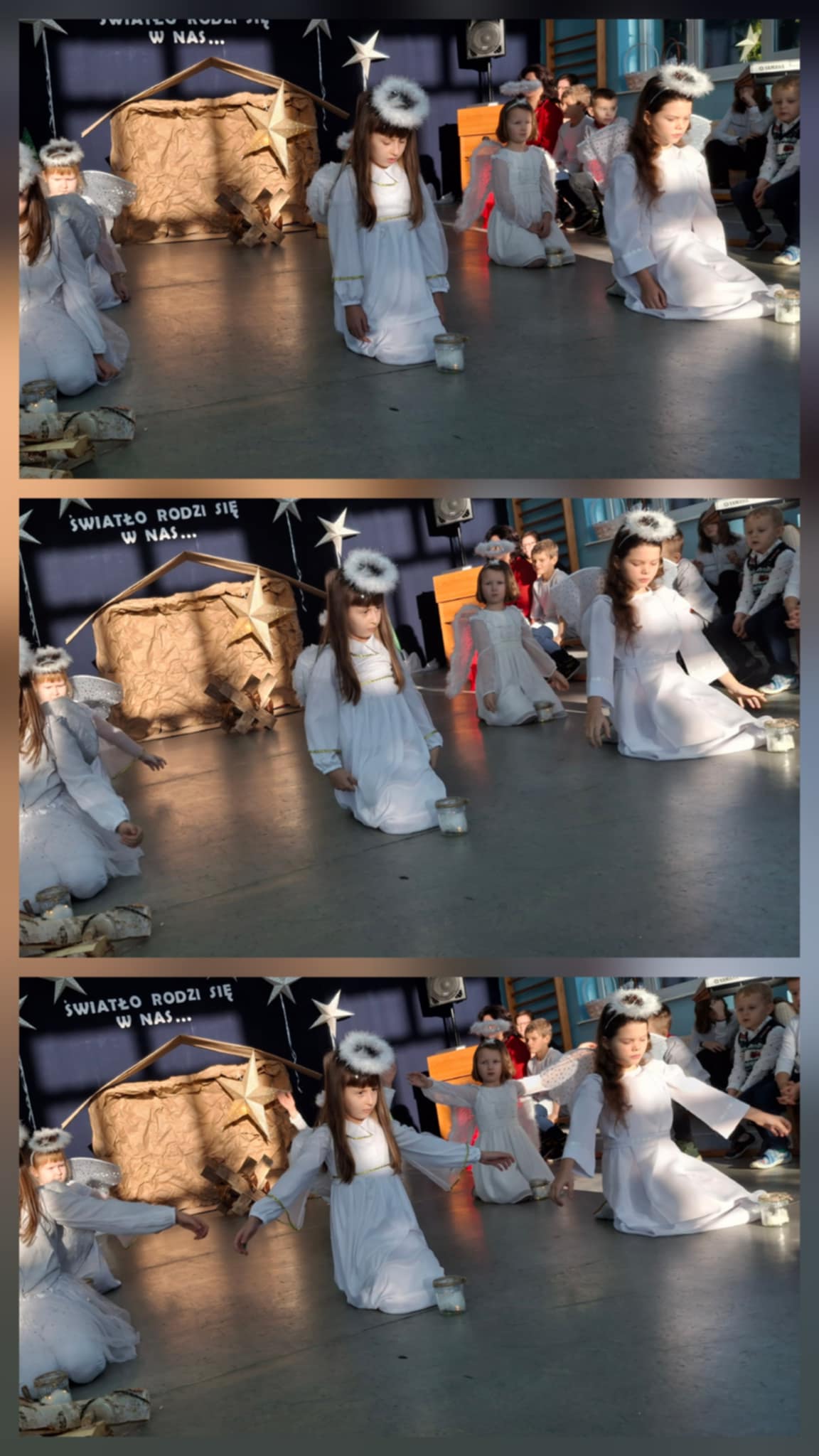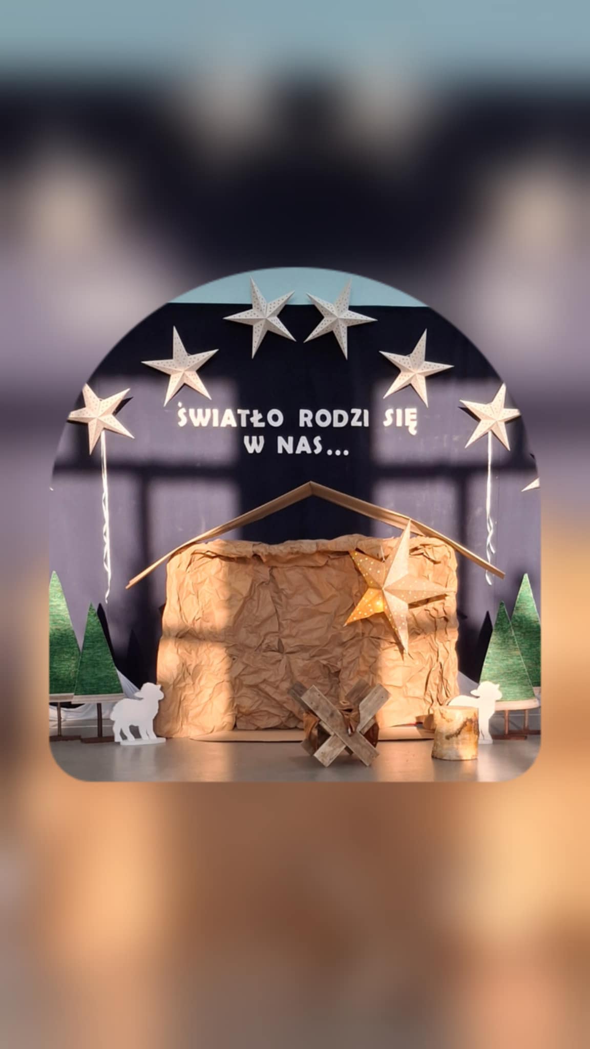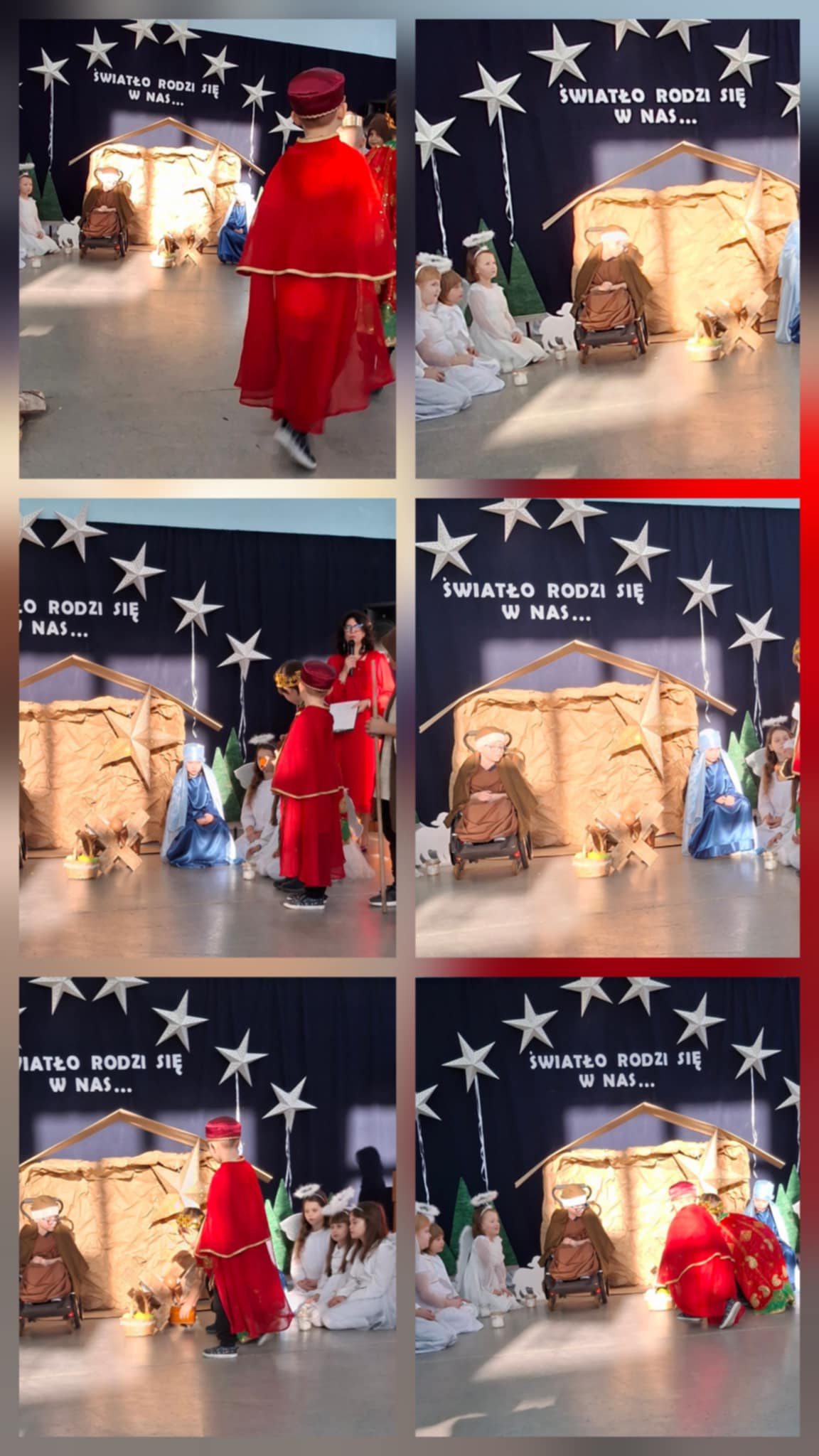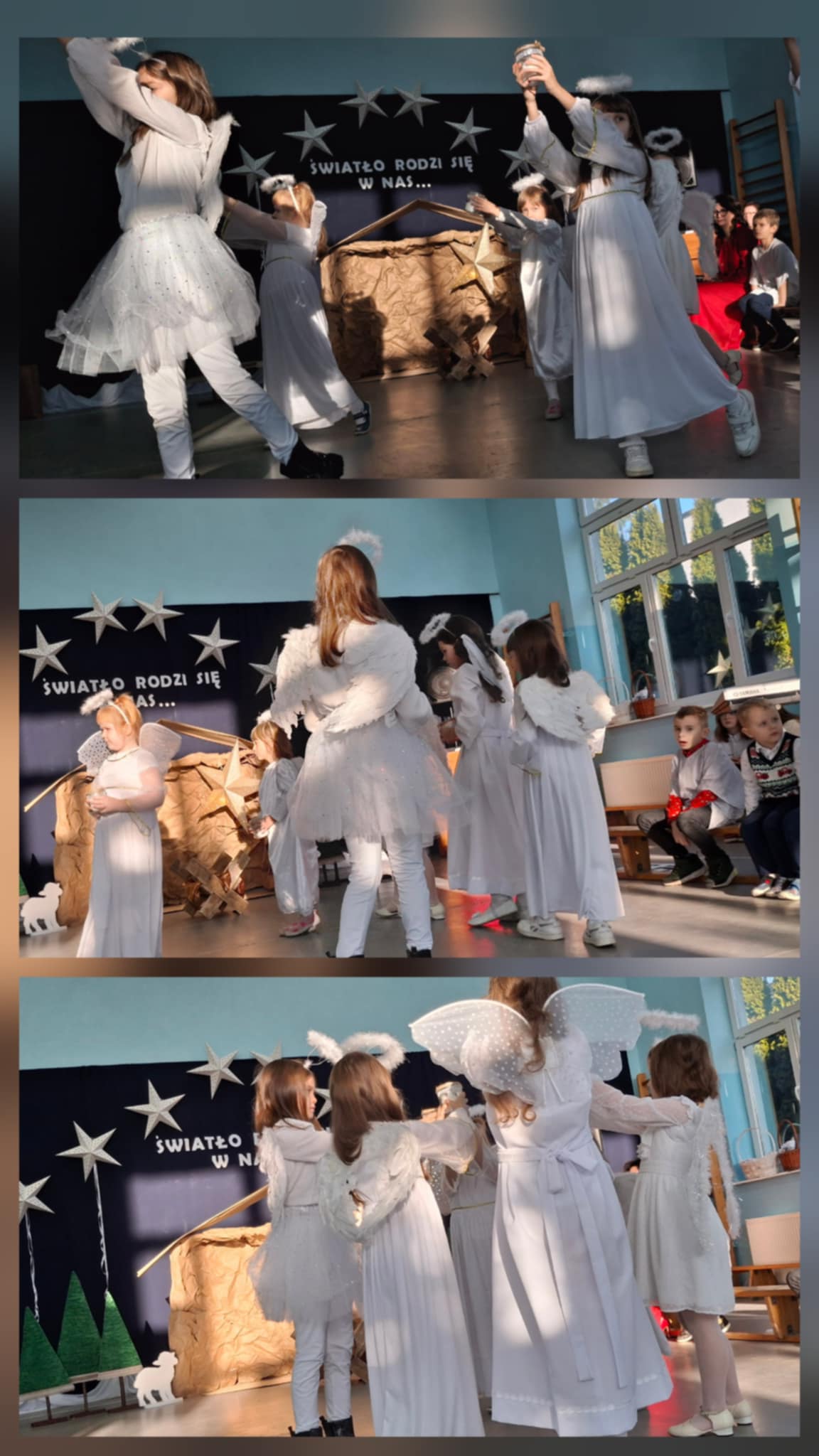 Najmłodsi uczniowie zaprezentowali również montaż słowno-muzyczny pt. „Światło rodzi się w nas”, przygotowany pod kierunkiem Pań: Agnieszki Kołodziejczak, Emilii Napierały oraz Barbary Jarońskiej. Dzieci w piękny sposób przypomniały o duchowym wymiarze Świąt Bożego Narodzenia, wprowadzając widzów w magię Bożego Narodzenia.