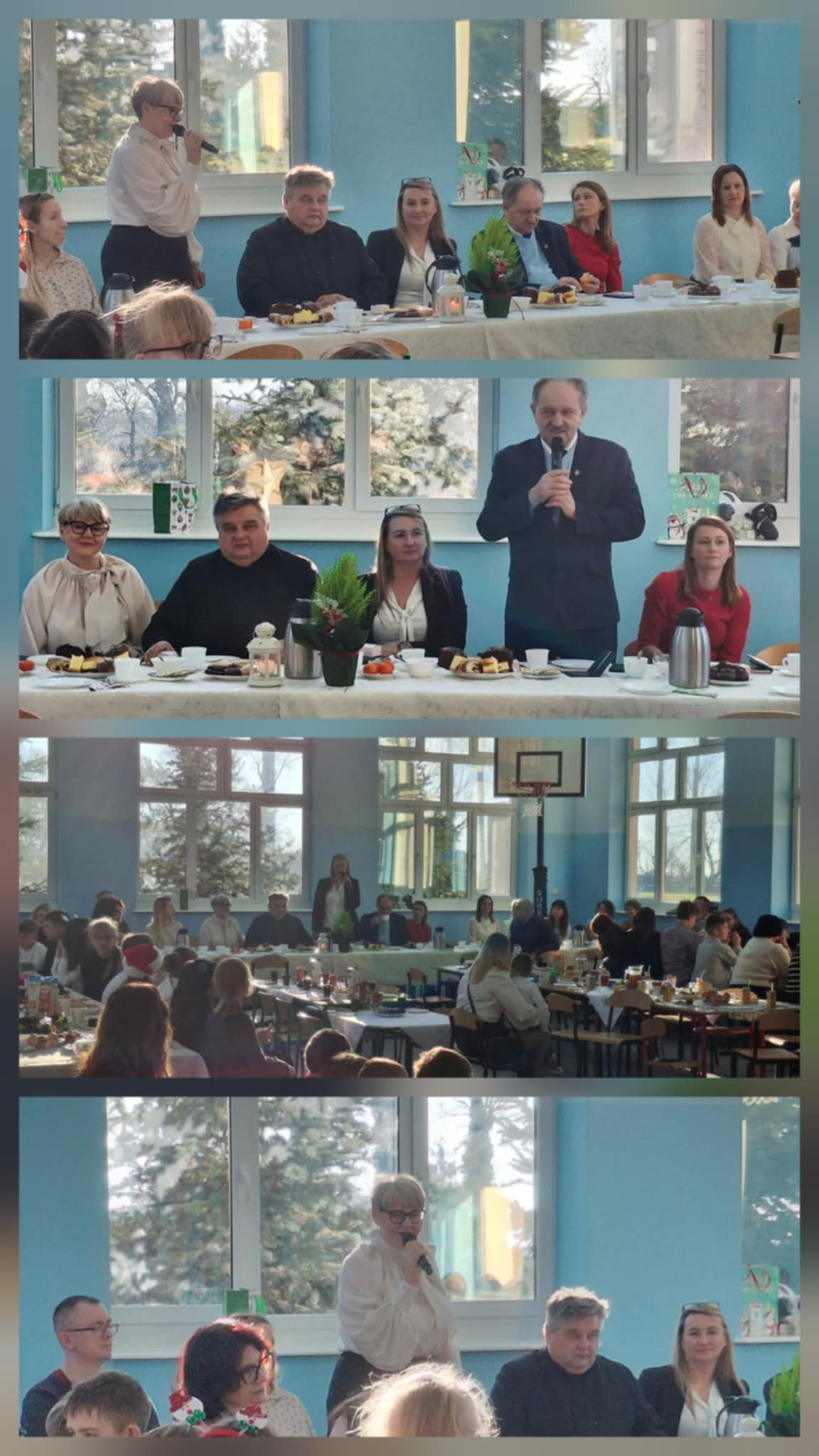 W ramach Wiglijnego spotkania mieliśmy także okazję wysłuchać przemówień naszych gości : Księdza Andrzeja Czubaszewskiego, Pana Burmistrza Mirosława Durczyńskiego, Przewodniczącej Rady Miejskiej Pani Urszuli Furmaniak, Przewodniczej Rady Rodziców Pani Justyny Jabłońskiej oraz Pani Dyrektor Aliny Kozłowskiej, którzy podzielili się refleksjami na temat nadchodzących świąt oraz wartości, jakie niosą ze sobą te wyjątkowe dni.