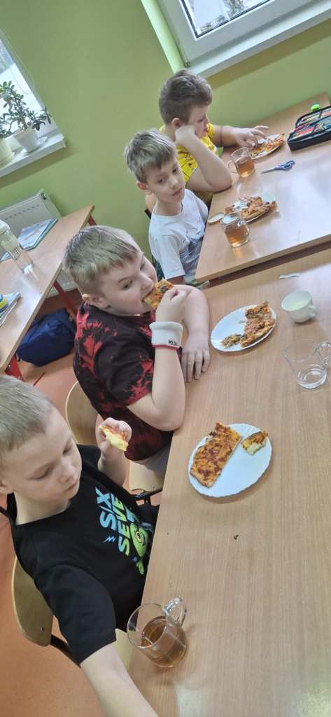 Po upieczeniu przyszedł czas na degustację. Przygotowana pizza smakowała wyśmienicie, a radość i zaangażowanie uczniów sprawiły, że był to wyjątkowo udany dzień.