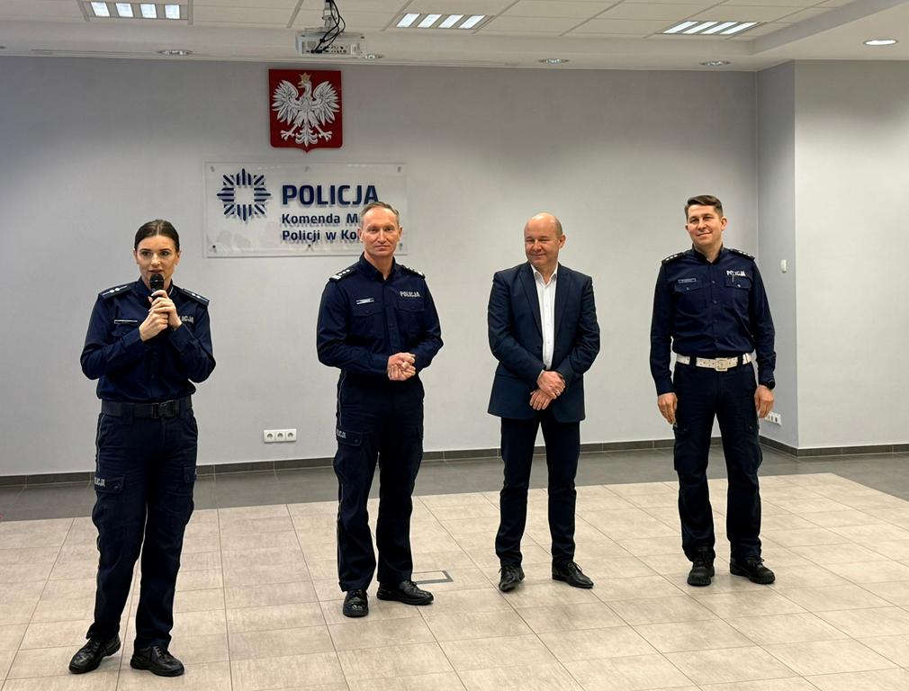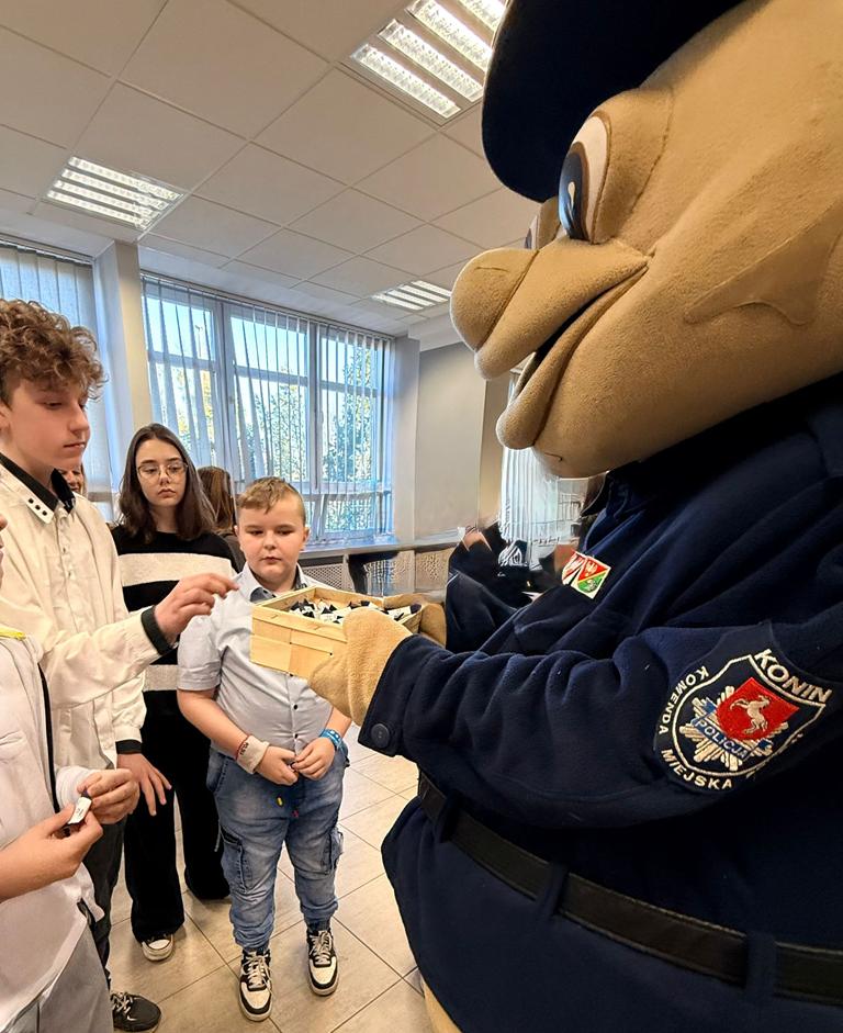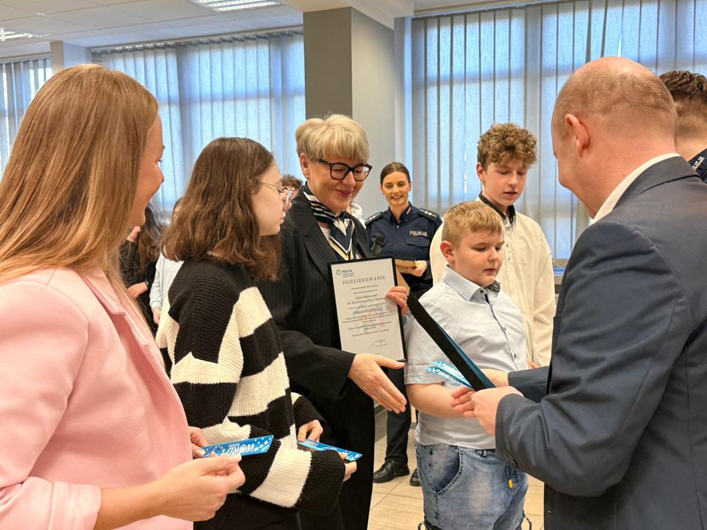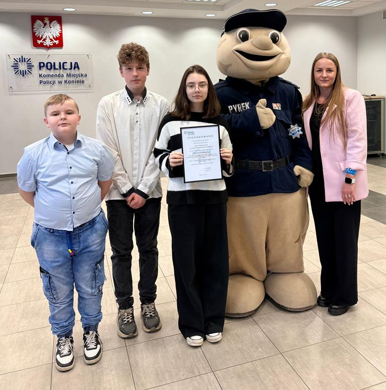 6 marca 2025 r. uczniowie naszej szkoły wzięli udział w wyjątkowym spotkaniu w Komendzie Miejskiej Policji w Koninie, które miało formę podziękowania za udział w I edycji Wielkopolskiego Konkursu „Odblaskowa Szkoła” 2025. Podziękowania odebraliśmy z rąk Komendanta KMP w Koninie insp. Przemysława Kozaneckiego, Naczelnika Wydziału Ruchu Drogowego KMP w Koninie kom. Bartłomieja Kacprzaka oraz Dyrektora WORD w Koninie p. Pawła Durkiewicza.