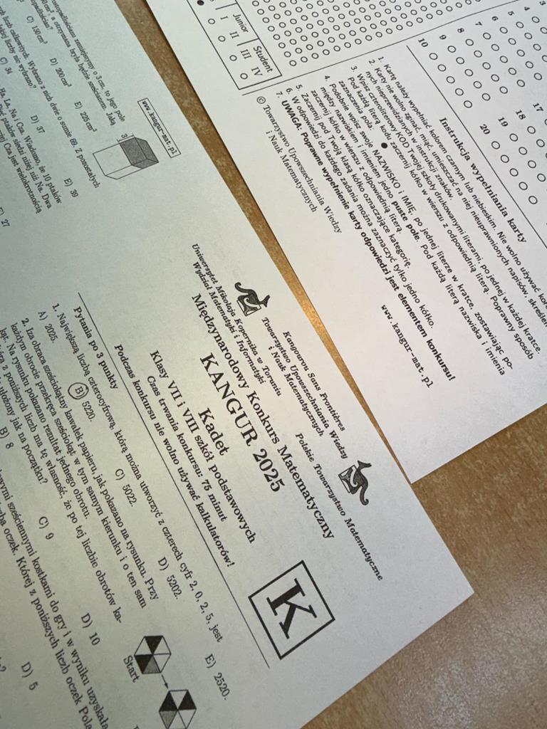 20 marca 2025 roku o godzinie 9.00 uczniowie naszej szkoły przystąpili do Międzynarodowego Konkursu Matermatycznego „Kangur”.