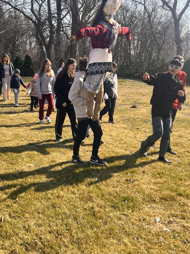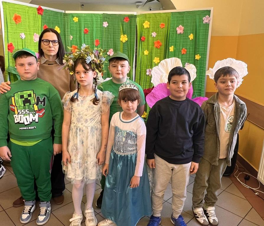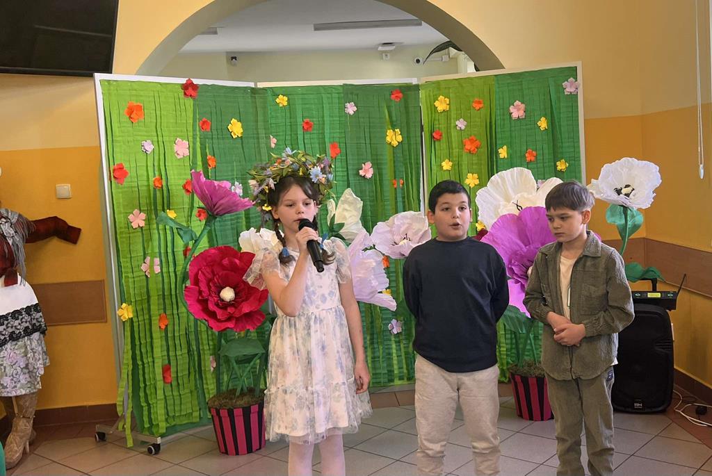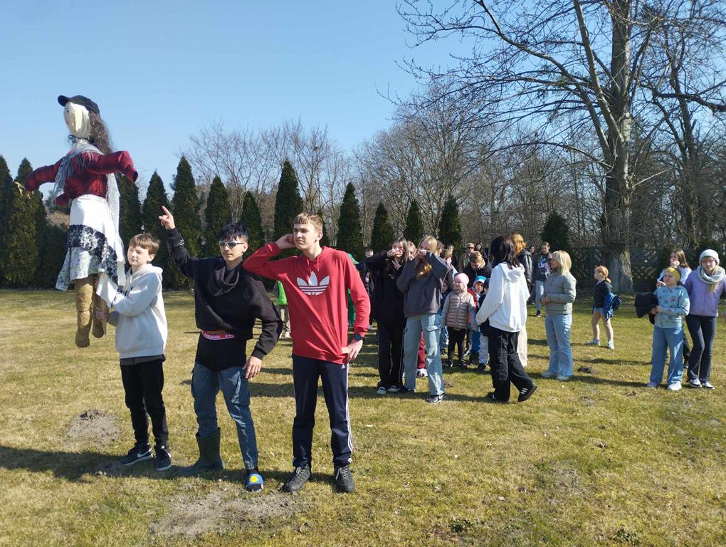 Najbardziej znanym z ludowych zwyczajów powitania wiosny jest topienie Marzanny. Po raz pierwszy został opisany w XVI wieku przez Marcina Bielskiego. Marzannę – słomianą kukłę, ubraną na biało, przyozdobioną wstążkami i koralami, topiono w rzekach, jeziorach stawach i innych akwenach. Była znana pod różnymi imionami. Nazywano ją Moreną, Marzoniokiem, Śmiercią, Śmiercichą czy Śmierztką. Symbolizowała wszystko, co złe – była wyobrażeniem nie tylko zimy, ale również chorób i niepowodzeń. Po unicestwieniu Marzanny złe moce zostały przepędzone. Nowe życie znów mogło rozkwitać. Świętowanie rozpoczęliśmy warsztatami plastycznymi w których uczestniczyły dzieci z oddziałów przedszkolnych oraz klasy I- III. Dzieci wykonywały z papieru kolorowe kwiaty hiacyntów. Następnie cała społeczność szkolna mogła obejrzeć montaż słowno – muzyczny ,,Oznaki Wiosny’’ przygotowany przez koło aktorskie klas