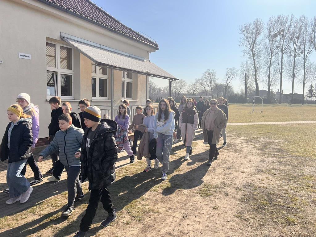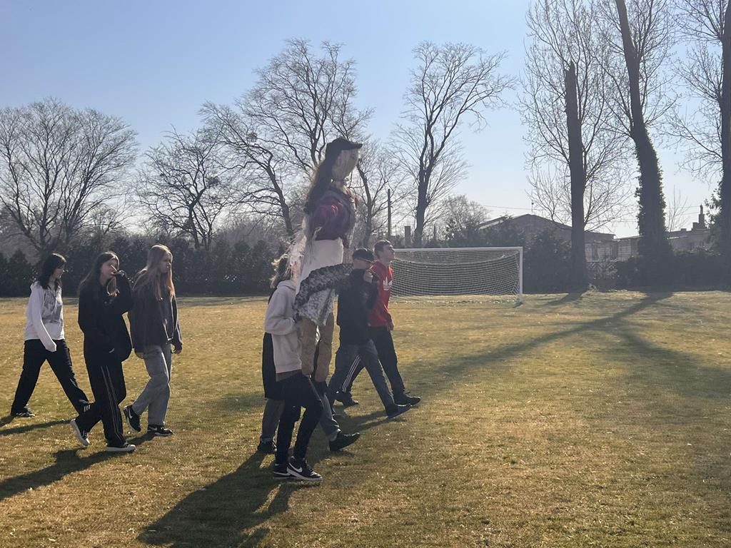 I – II. Kolejnym punktem był spacer z Marzanną , która została przygotowana przez uczniów klasy VIII. Sami mogliśmy się przekonać że wiosna już u nas zagościła , bo spacerując po naszym parku słyszeliśmy odgłosy ptaków i czuliśmy zapach budzącej się przyrody.