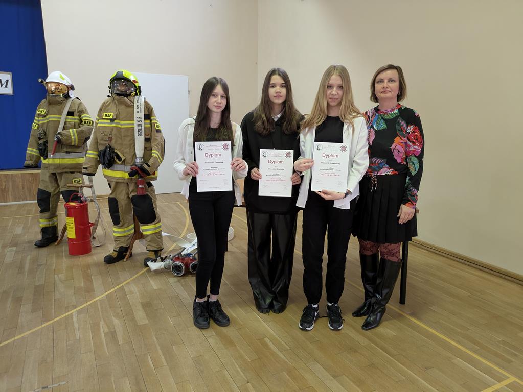 Kolejna edycja gminnych eliminacji konkursu pożarniczego, w którym wzięły także udział uczennice naszej szkoły: Wiktoria Urbańska, Zuzanna Kurleto i Dominika Grzesiak z klasy VIII, za nami. Odbył się on w murach Szkoły Podstawowej w Przyjmie pod patronatem burmistrza Goliny pana Mirosława Durczyńskiego. Konkurs polegał na rozwiązaniu testu składającego się z 20 pytań zamkniętych dotyczących m.in. bezpieczeństwa i pierwszej pomocy oraz wyposażenia pożarniczego. Najwięcej punktów z naszej szkoły zdobyła Dominika Grzesiak. Uczennice obejrzały także pokaz przygotowany przez strażaków z Przyjmy. Za udział w konkursie otrzymały pamiątkowe dyplomy i słodkie upominki.