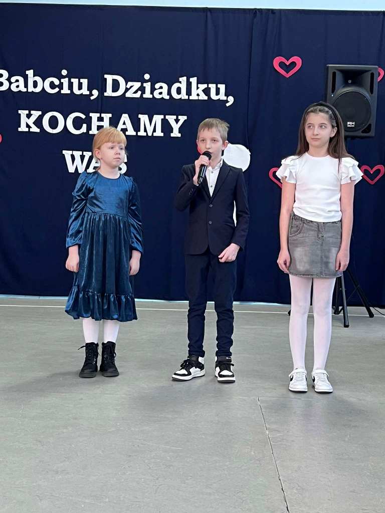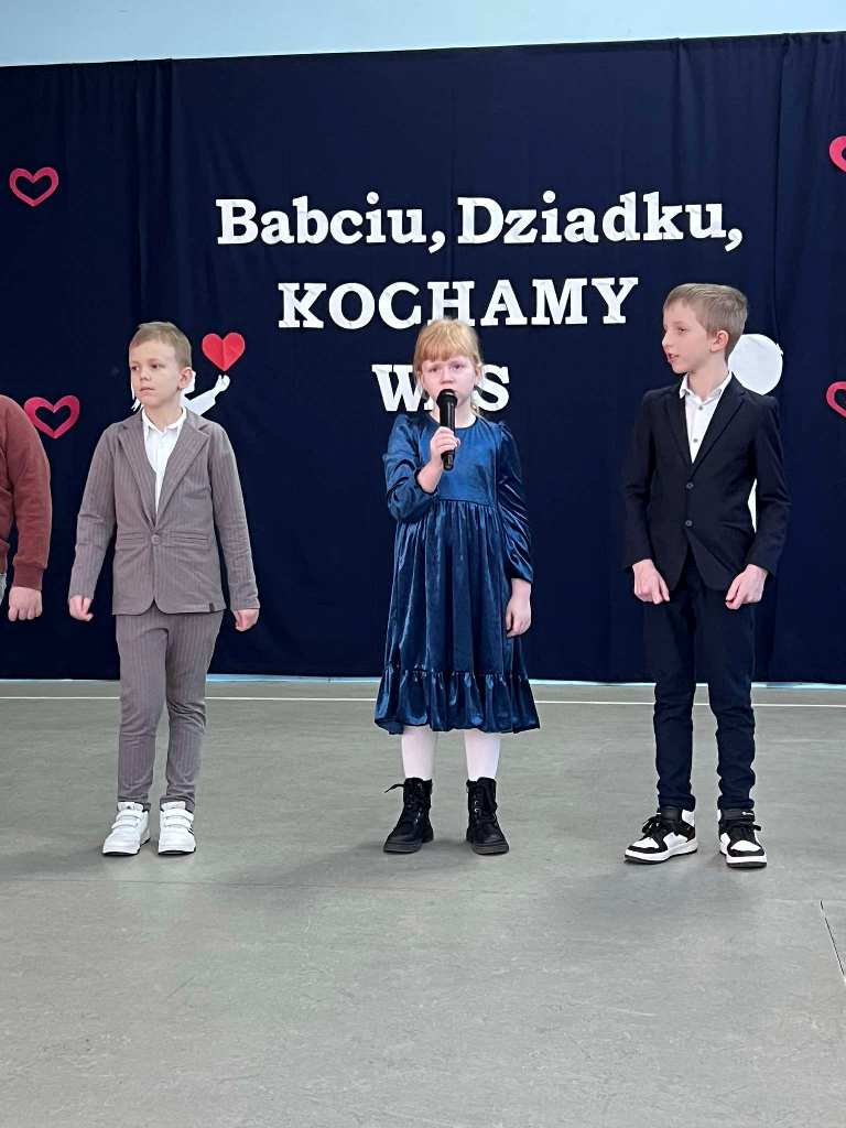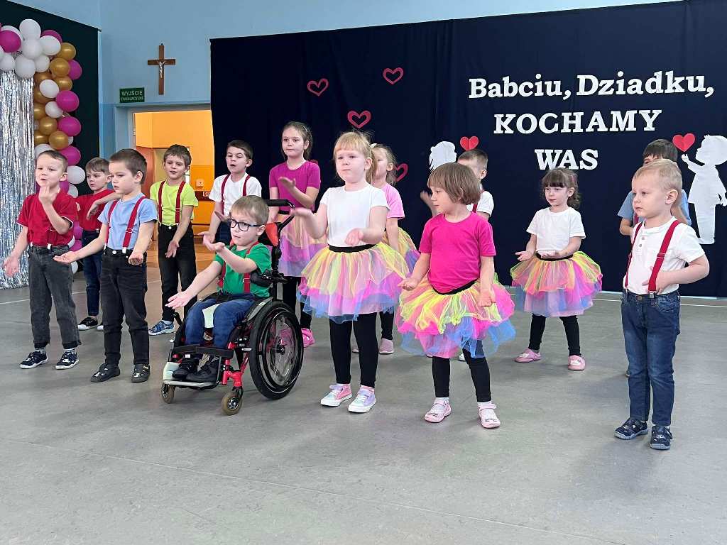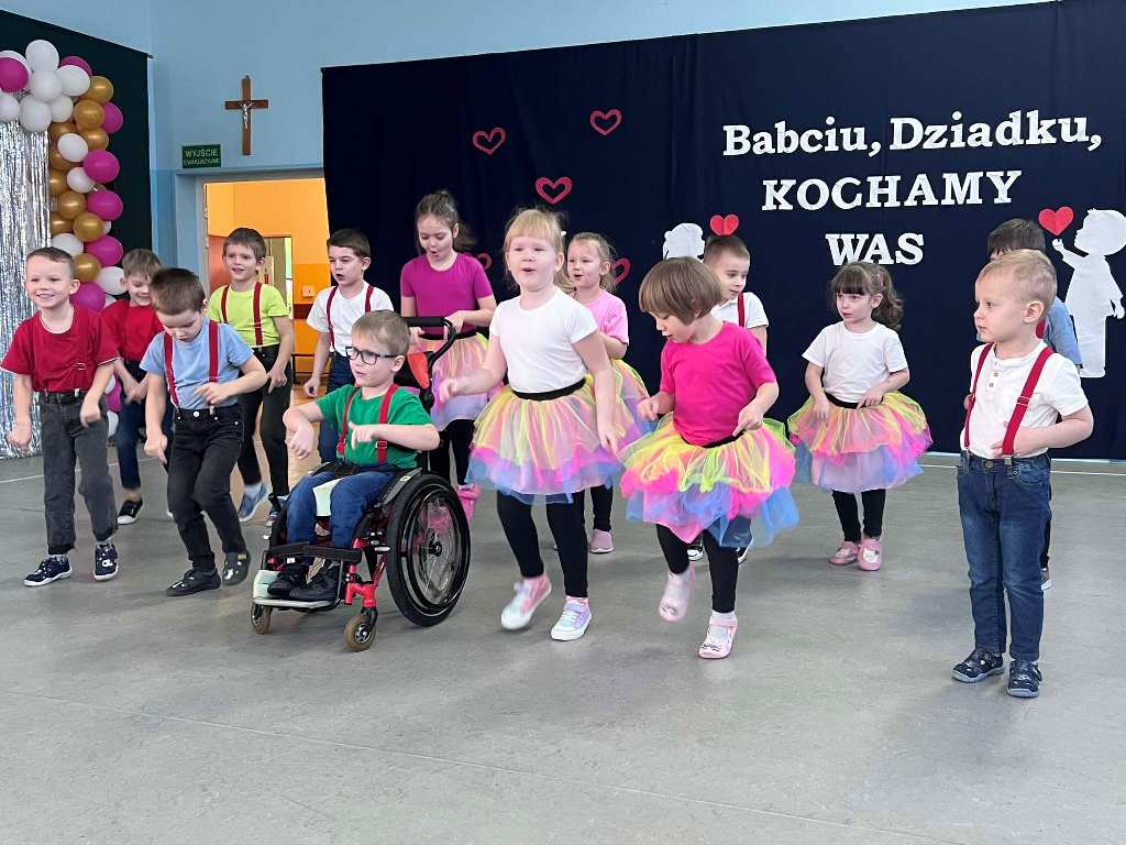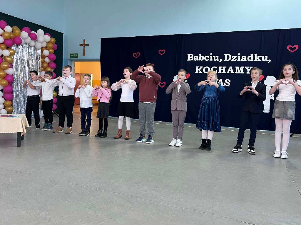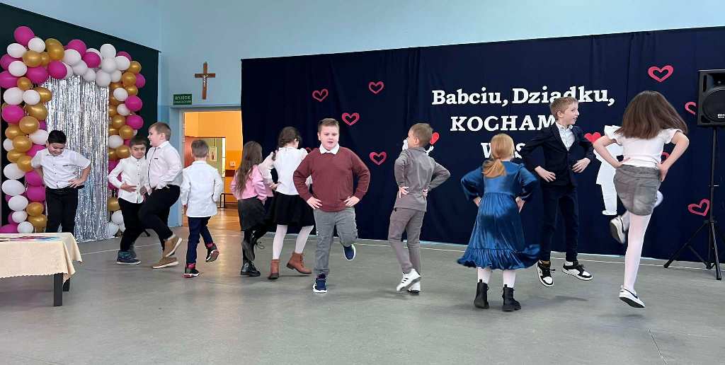 Licznie przybyli: Babcie i Dziadkowie, mieli okazję podziwiać swoje wnuczęta w specjalnie dla nich przygotowanym programie artystycznym. Klasy I- III przygotowały montaż słowno - muzyczny zatytułowany " Za co kochamy babcię i dziadka?", zaśpiewały piosenkę "Poleczka dla babci i dziadka", natomiast dzieci z przedszkola i Zerówki przygotowały taniec pt.: "Babciu , dziadku tańczę twista".