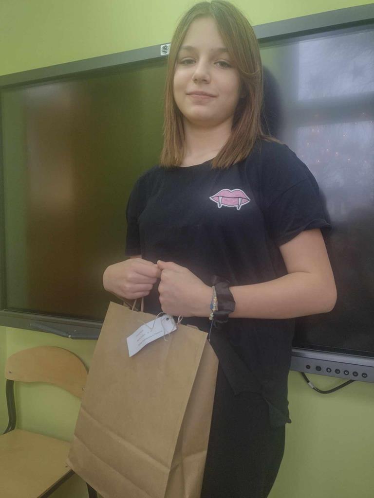 Wszyscy uczniowie otrzymali nagrody, które zostały wręczone przez panią dyrektor Alinę Kozłowską i panią Karolinę Kasprzak – bibliotekarkę z Biblioteki Publicznej w Golinie.