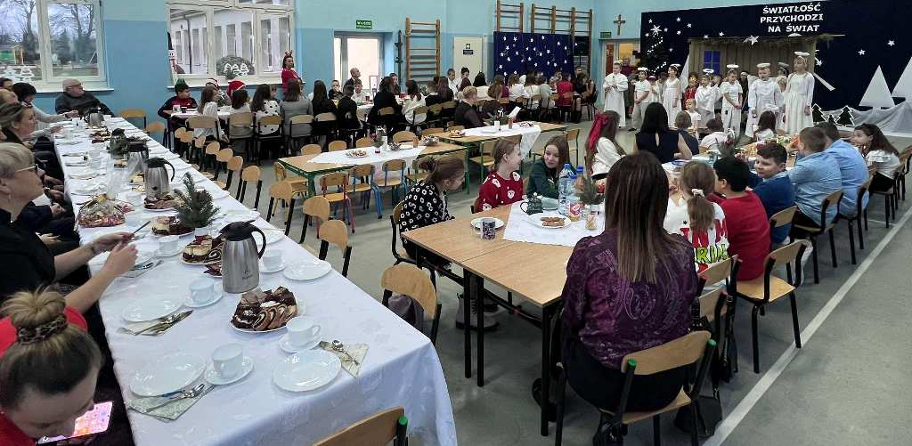 20 grudnia odbyła się w naszej szkole wigilia szkolna, podczas której gościliśmy Pana Burmistrza Mirosława Durczyńskiego, Przewodniczącą Rady Miejskiej Panią Urszula Furmaniak, Radnych naszej Gminy: Pana Dawida Czajkę oraz pana Łukasza Wasilewskiego, Panią Zofie Szotę -Emerytowaną nauczycielkę naszej szkoły, Przybyłych Rodziców z Przewodniczącą Panią Edytą Czerniak.