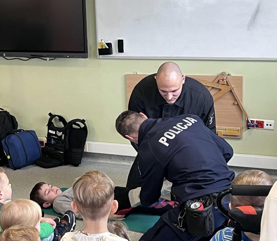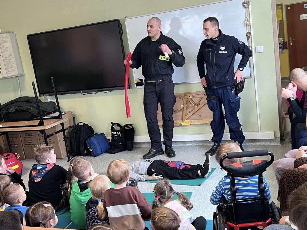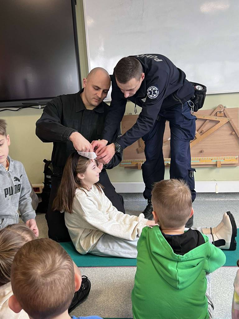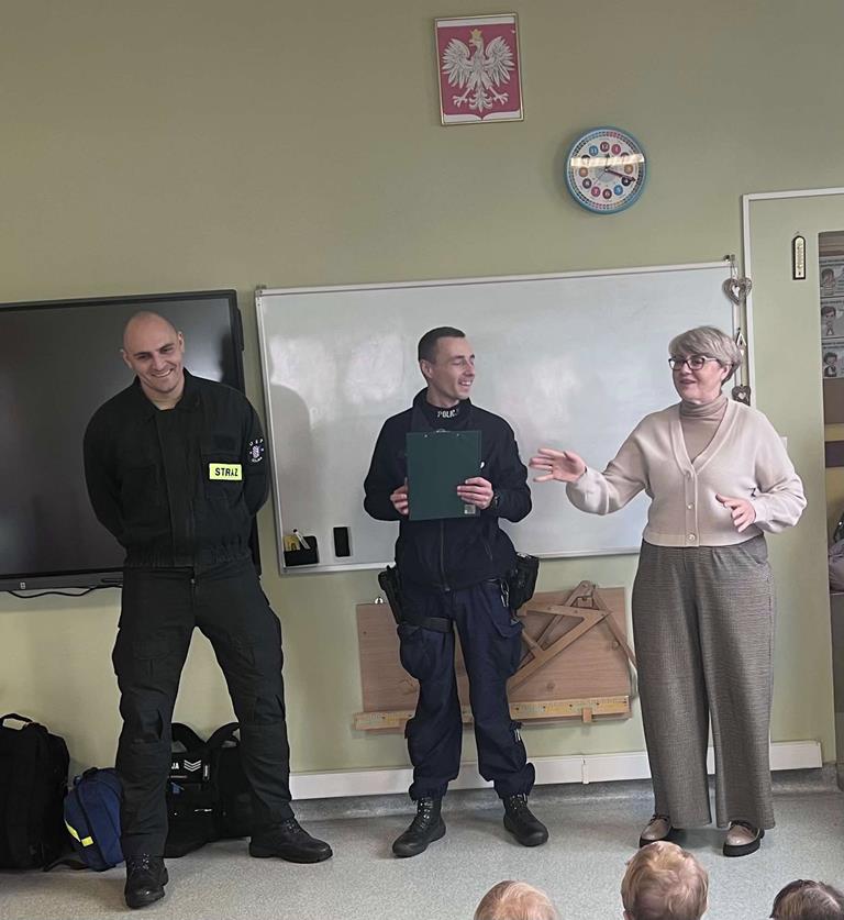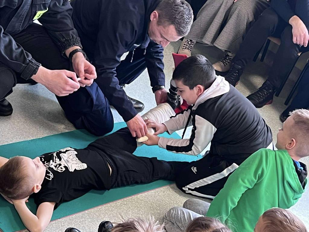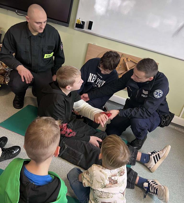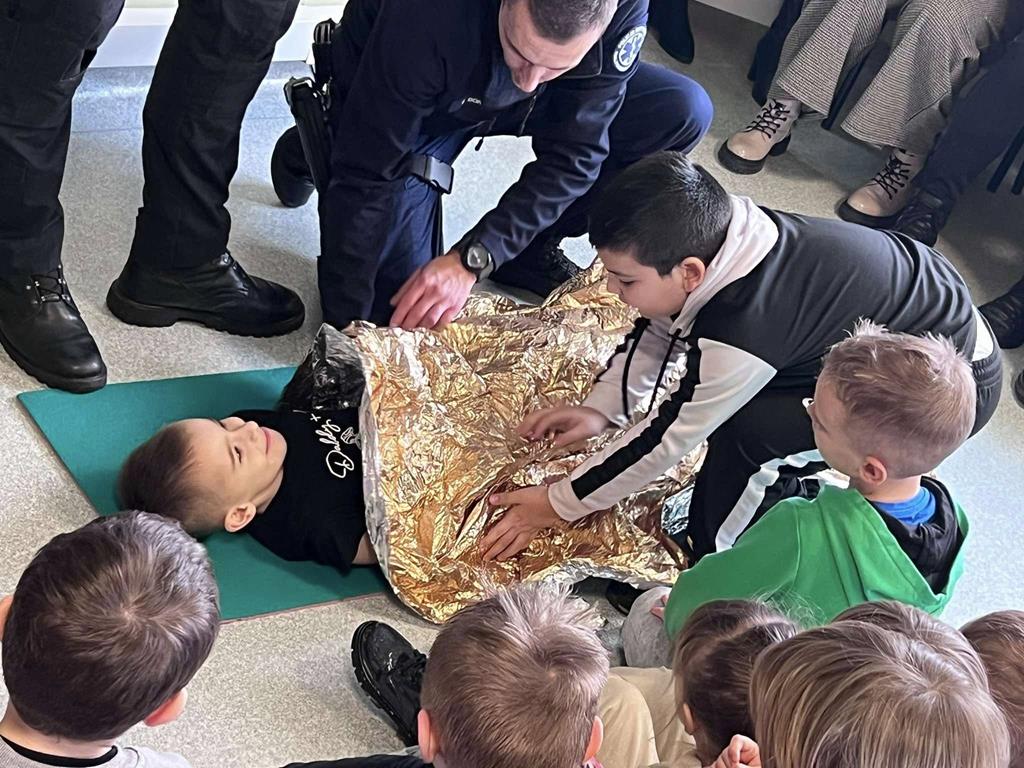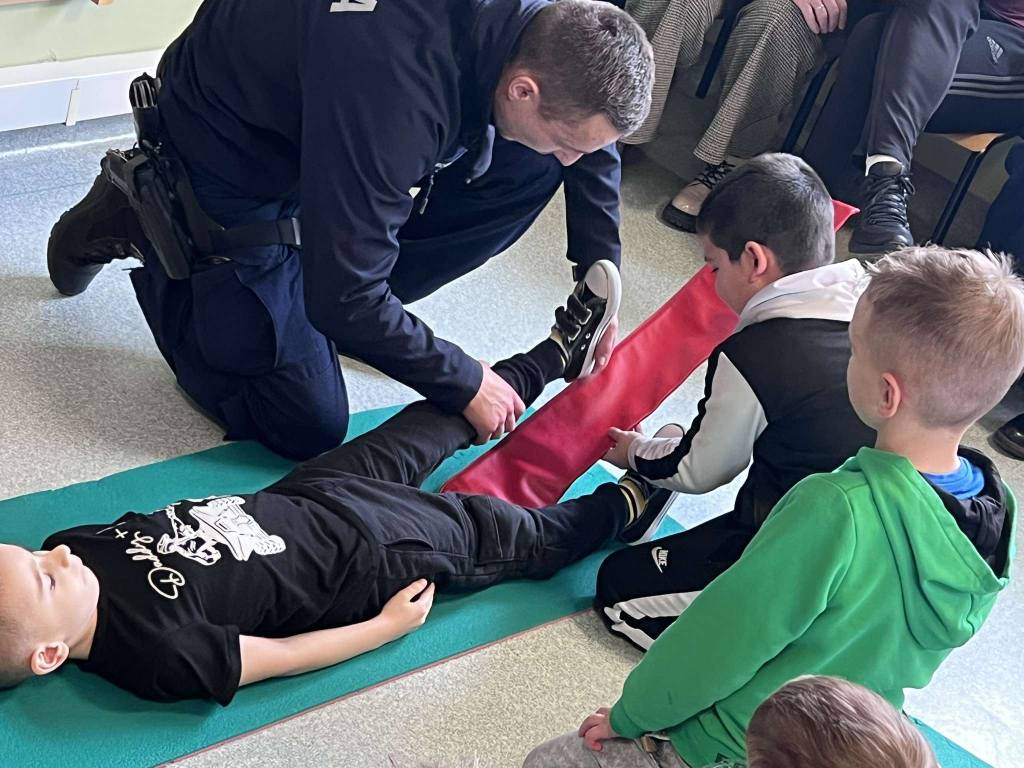 W trosce o bezpieczeństwo naszych uczniów podczas ferii zimowych w dniu 13 stycznia odbyło się spotkanie profilaktyczne z dzielnicowym, panem Dawidem Borowcem z Posterunku Policji w Golinie oraz z druhem OSP w Golinie, panem Bartoszem Kanafa. Panowie omówili zasady bezpieczeństwa w trakcie gier i zabaw na świeżym powietrzu oraz podczas uprawiania sportów zimowych. Uczniowie aktywnie uczestniczyli w części teoretycznej i praktycznej pogadanki, podczas której poznali zasady udzielania pierwszej pomocy.