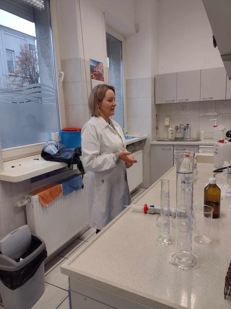 Podczas zajęć edukacyjnych prowadzonych przez specjalistów z PSSE w Koninie uczniowie dowiedzieli się, co to znaczy prowadzić zdrowy styl życia, w jaki sposób zwracać uwagę na jakość wody, którą pijemy oraz jak ogromne znaczenie ma aktywność fizyczna dla naszego zdrowia. Następnie uczniowie udali się z panią prelegentką do laboratorium, gdzie mieli okazję zobaczyć, w jaki sposób bada się wodę.