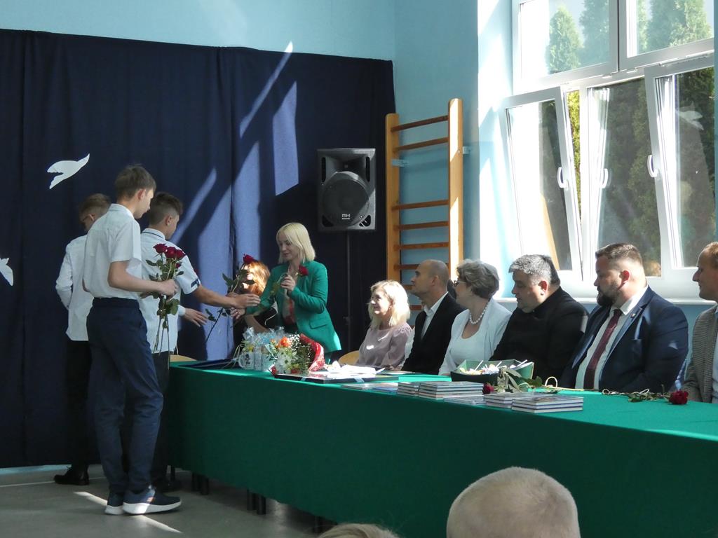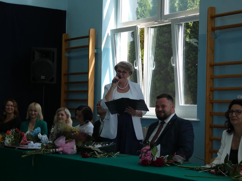 Pani Dyrektor w swoim przemówieniu podkreśliła, że ważne jest, aby każdy uczeń czuł się w szkole bezpiecznie, gdyż sprzyja to efektywnej nauce; nauczycielom życzyła radości z wykonywanej pracy i sukcesów edukacyjnych, a do rodziców zwróciła się z prośbą o współpracę i wsparcie.