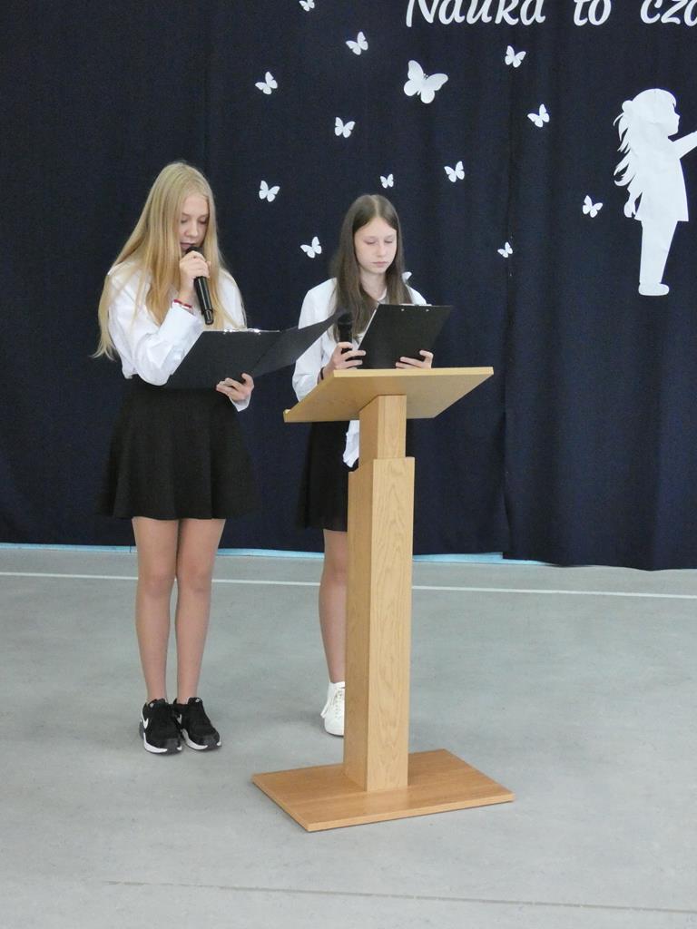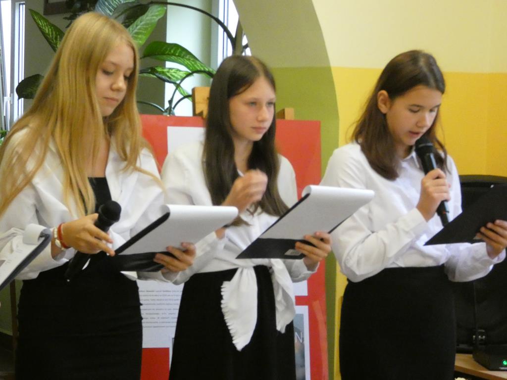 Uczczono również osiemdziesiątą piątą rocznicę wybuchu II wojny światowej. Przypomniano, że był taki wrzesień, kiedy klasy nie doczekały się uczniów. Dnia 1.09.1939 roku hitlerowskie Niemcy zaatakowały granice Polski i rozpoczęła się II wojna światowa. Naszą powinnością i obowiązkiem jest czcić pamięć poległych żołnierzy i nigdy nie zapominać o przeszłości.