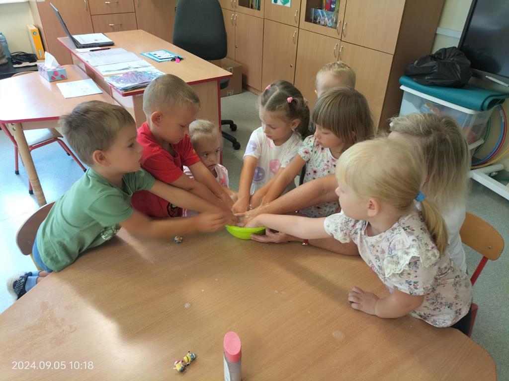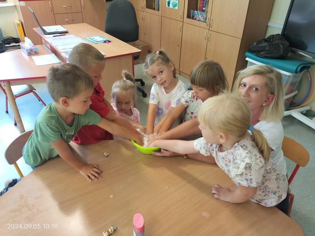 W dniu dzisiejszym w oddziale przedszkolnym podczas takich zabaw, dzieci doskonale się bawiły rozwijając różne zmysły oraz integrowały się, poznając się wzajemnie.