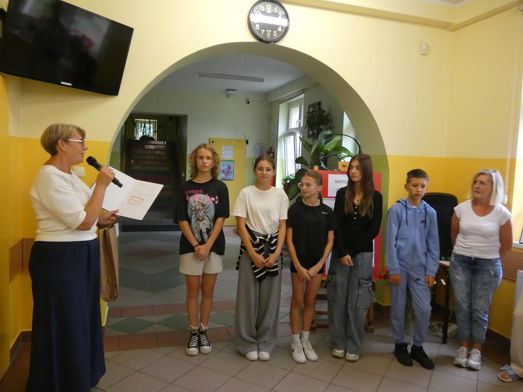 Ważną częścią uroczystości było wręczenie nagród uczniom z bardzo dobrymi ocenami i wzorowym zachowaniem. Pani dyrektor Alina Kozłowska doceniła zaangażowanie i wysiłek wszystkich nagrodzonych uczniów. Podczas uroczystości uczniowie klasy pierwszej pożegnali swoich starszych kolegów, wręczając im upominki. Uczniowie z koła aktorskiego i muzycznego mieli okazję zaprezentować swoje talenty i umiejętności.