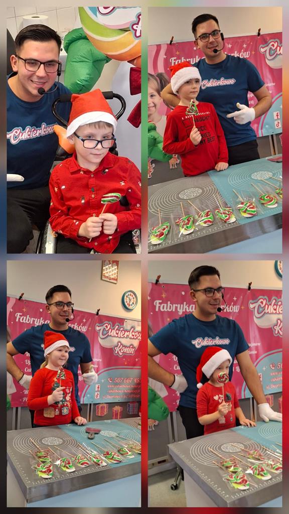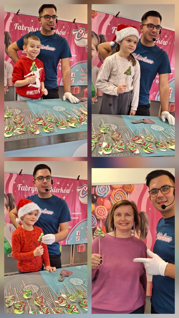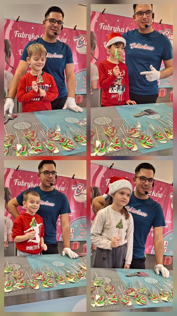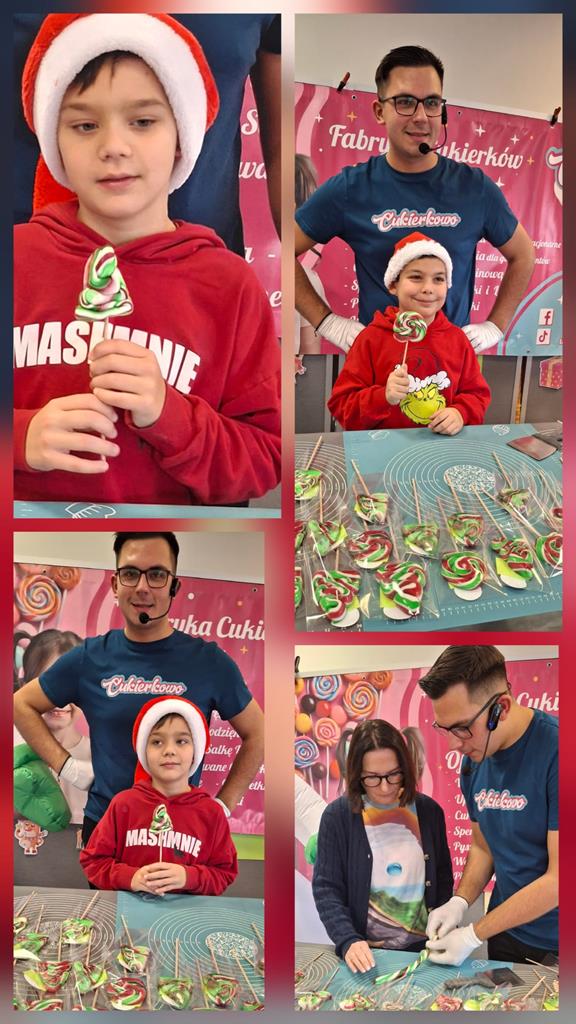 Dziś w naszej szkole odbyły się wyjątkowe Mikołajkowe warsztaty tworzenia lizaków, które poprowadziła dla nas Fabryka Cukierków Cukierkowo z Konina. Uczniowie mieli okazję zobaczyć, jak powstają kolorowe słodkości, a następnie samodzielnie uformować własne, unikatowe lizaki. Zajęcia były pełne radości, kreatywności i pysznych aromatów. Dzięki Cukierkowo Konin dzieci mogły połączyć naukę z zabawą, poznając tajniki pracy cukiernika. Dziękujemy za inspirujące i bardzo słodkie spotkanie!