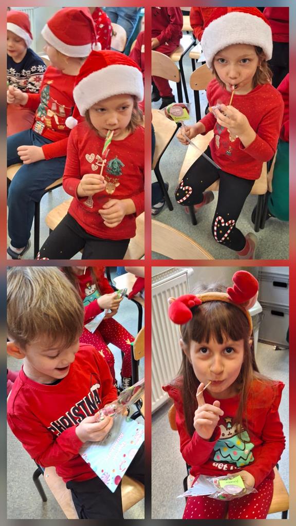 Na przerwach rozbrzmiewała świąteczna muzyka, dzięki czemu atmosfera była jeszcze bardziej magiczna. Wielu uczniów przyszło ubranych w mikołajkowe stroje, czapki, rogi reniferów i czerwone sweterki – szkoła wyglądała dziś naprawdę wyjątkowo!