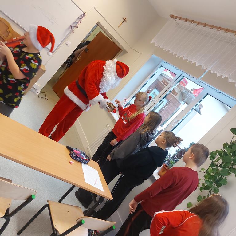 Dzisiejszy dzień był pełen uśmiechu i świątecznej radości! Samorząd Uczniowski zorganizował wyjątkowe Mikołajki, podczas których po szkolnych korytarzach spacerował sam Święty Mikołaj rozdający słodkości wszystkim uczniom.