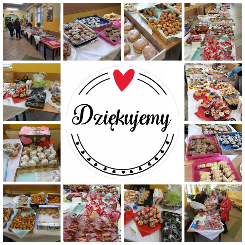 Społeczność szkolna składa podziękowania Panu Romanowi Żabierkowi za zakup pączków dla wszystkich uczniów oraz anonimowemu sponsorowi, który również przekazał na rzecz kiermaszu pączki.