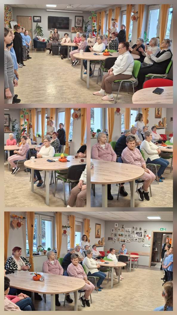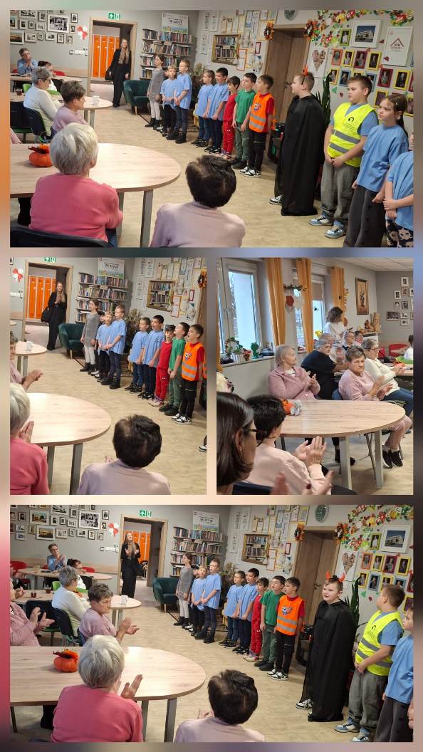Na zakończenie naszego projektu „Odblaskowa Szkoła” młodzi aktorzy ze szkolnego kółka aktorskiego odwiedzili Dom Seniora w Golinie, gdzie zaprezentowali krótkie przedstawienie dotyczące bezpieczeństwa na drodze oraz znaczenia noszenia odblasków.