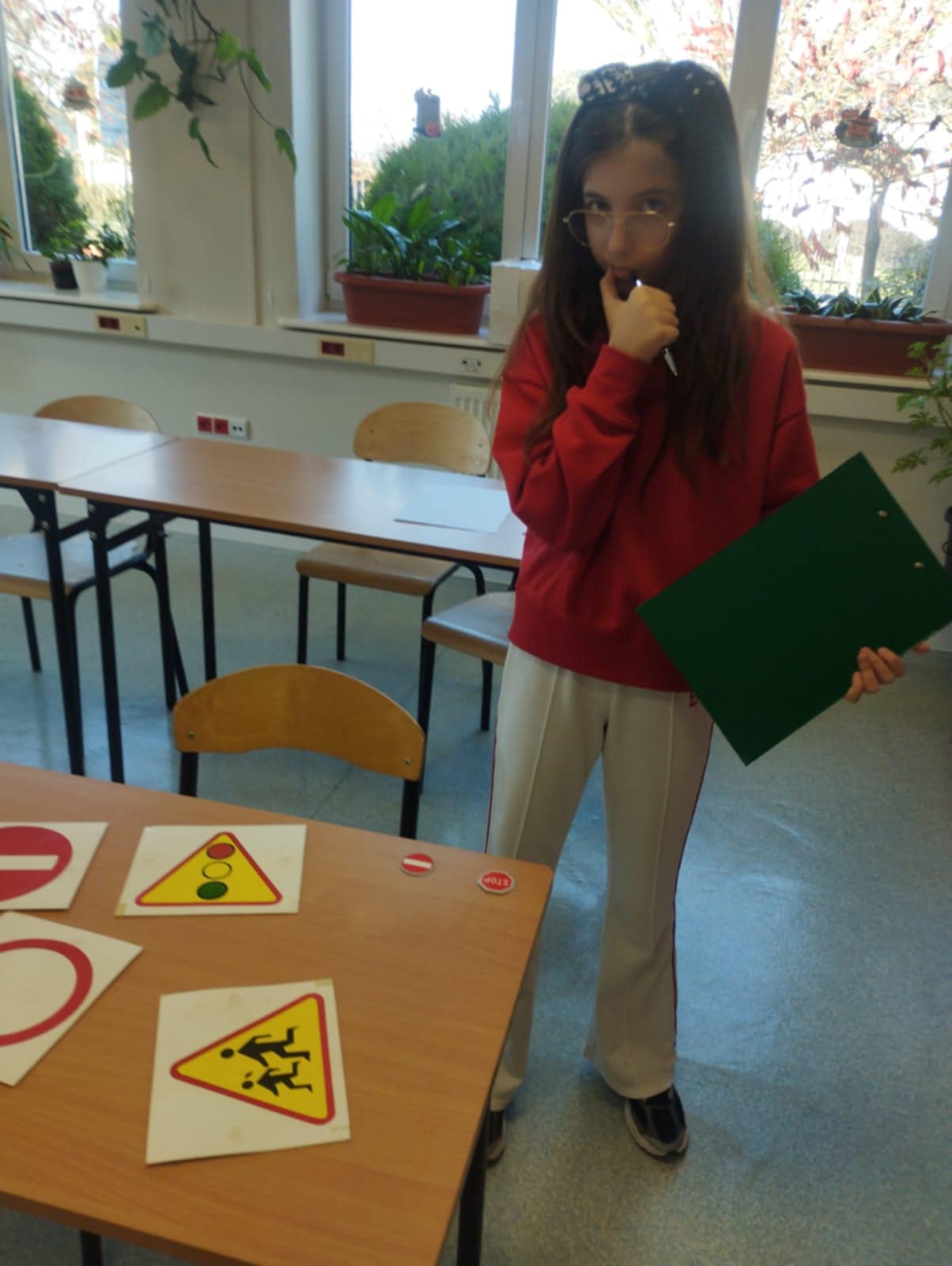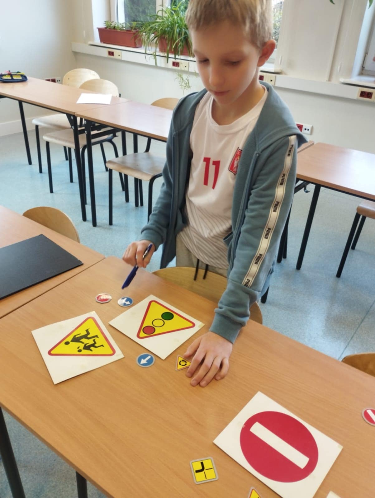 Podczas zabawy uczniowie przemieszczali się między przygotowanymi stacjami, gdzie rozpoznawali znaki drogowe, analizowali i ćwiczyli w praktyce zasady przechodzenia przez jezdnię, ćwiczyli prawidłowe zgłoszenie pod numer 112 oraz przypominali sobie znaczenie odblasków.