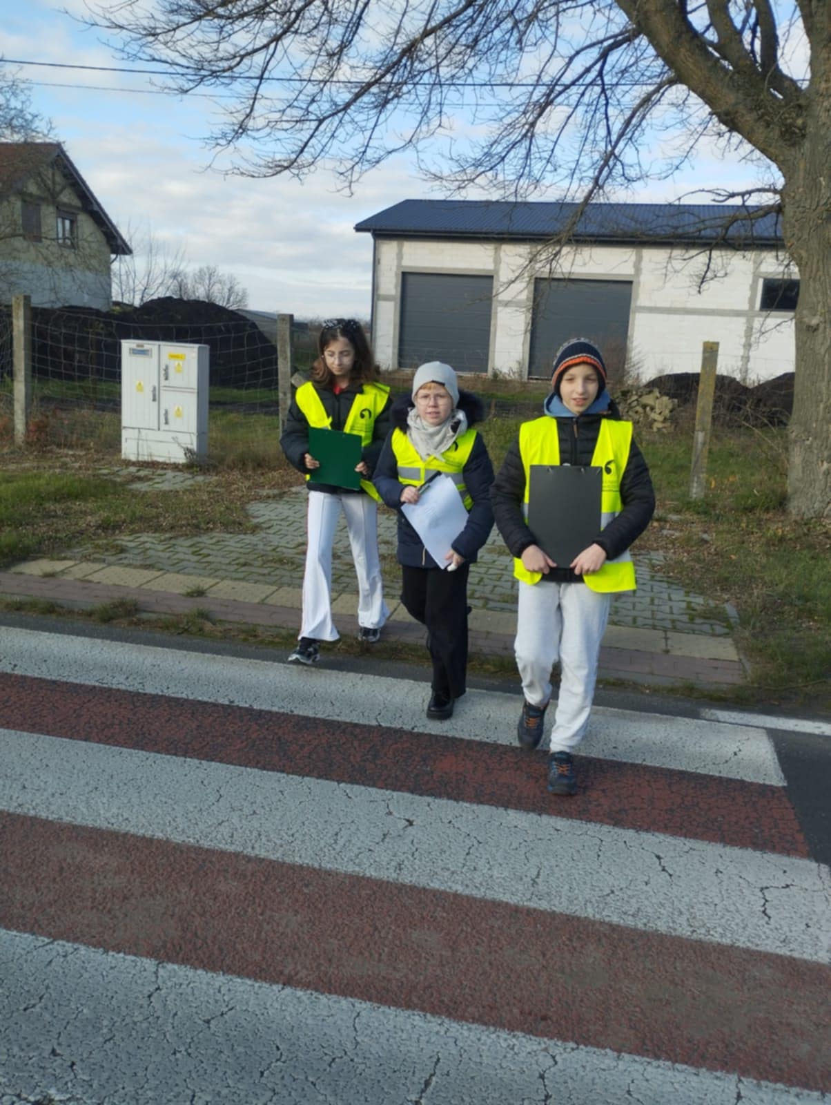 Uczniowie klasy 4 wzięli udział w grze terenowej „Odblaskowa szkoła”, której celem było utrwalenie zasad bezpieczeństwa w ruchu drogowym.