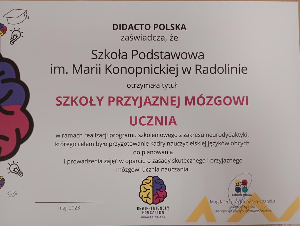 Przez ponad miesiąc intensywnie wdrażaliśmy wiedzę zdobytą podczas szkolenia na temat lekcji przyjaznej mózgowi ucznia.