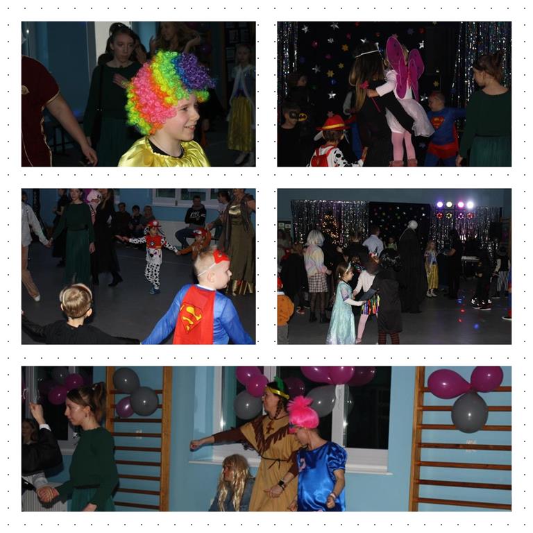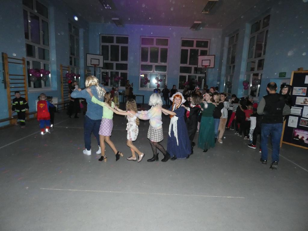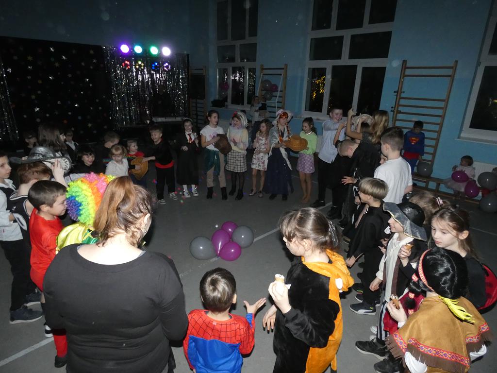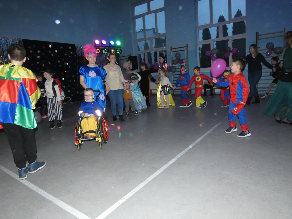 Tego dnia sala gimnastyczna wyglądała zupełnie inaczej niż zwykle – zamieniła się w salę balową, a to za sprawą pięknej dekoracji i kolorowych balonów oraz szybko zapełniła się miłośnikami tańca i dobrej zabawy w pięknych strojach karnawałowych. Były korowody, kółeczka i tańce w parach. Nad muzyczną oprawą imprezy czuwał DJ Piesik.