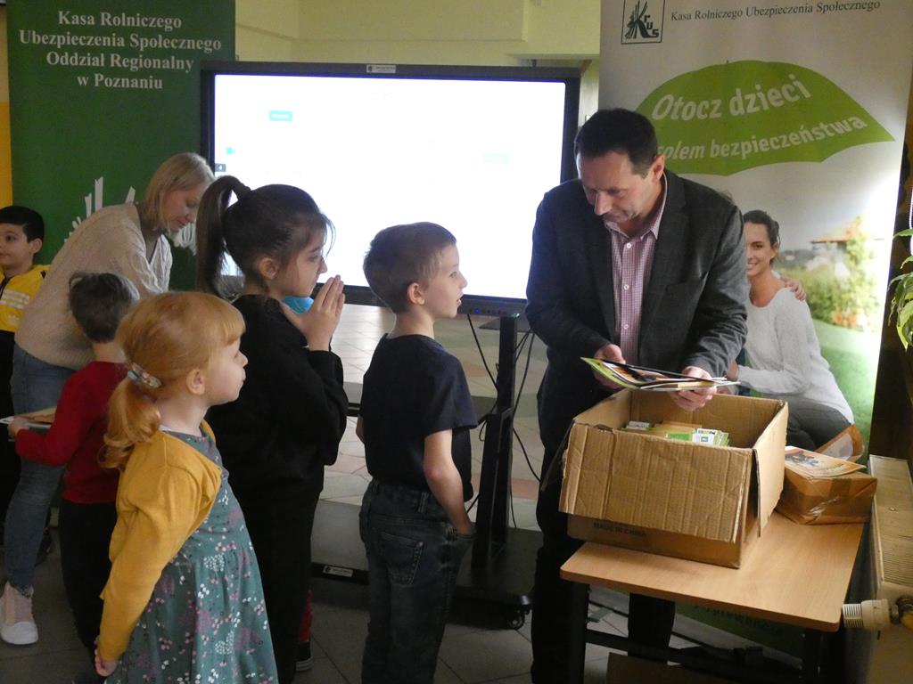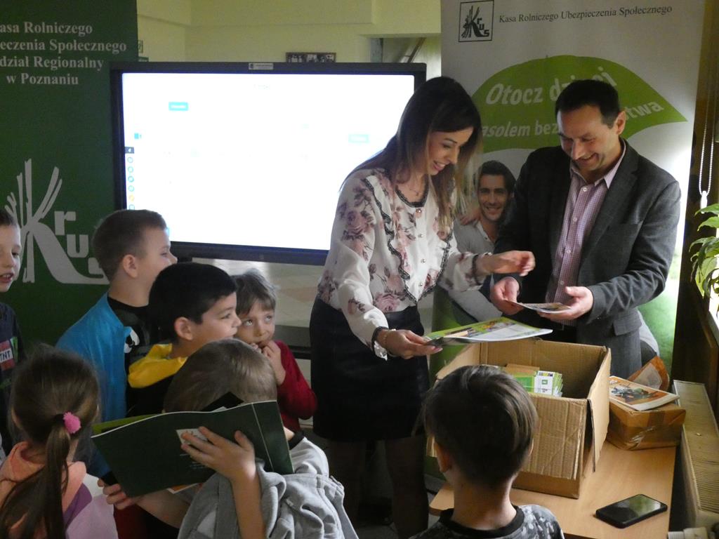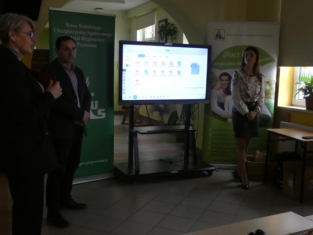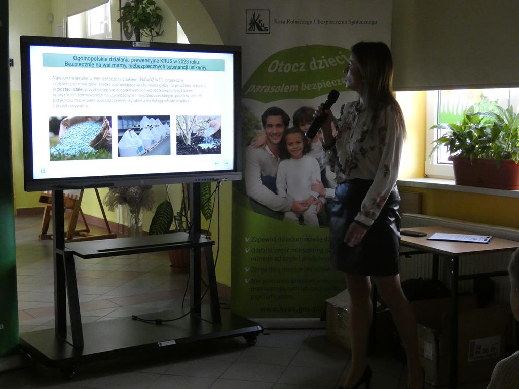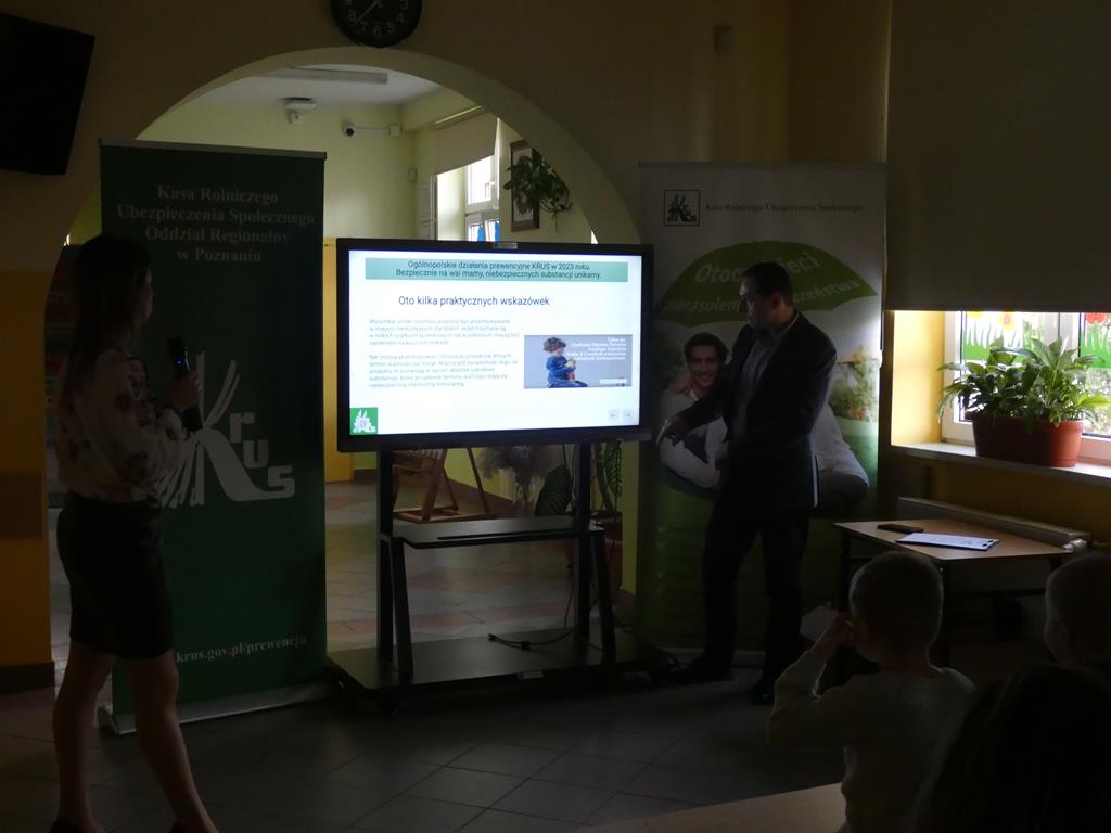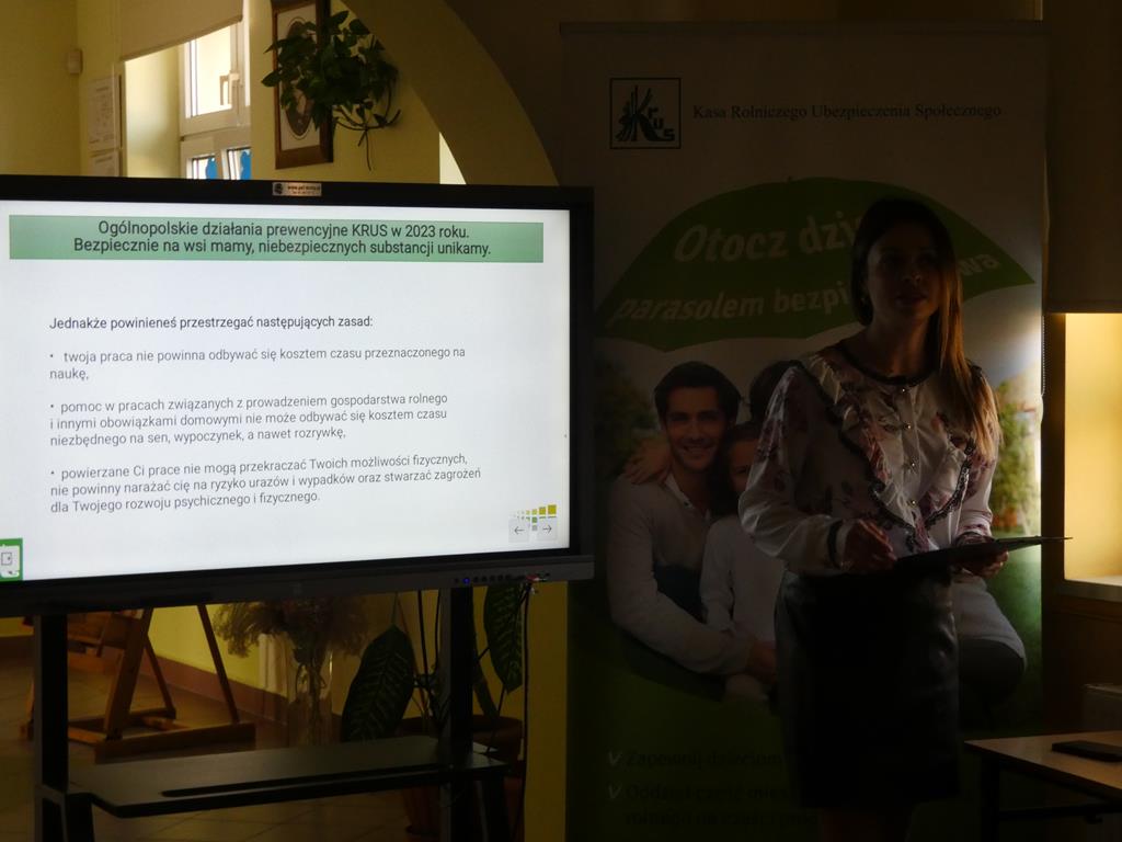 16 marca 2023 roku inspektorzy Kasy Rolniczego Ubezpieczenia Społecznego Oddział Rejonowy w Koninie Pani Aleksandra Turska i Pan Zbigniew Chmielewski gościli w naszej szkole z prelekcją dotyczącą bezpieczeństwa w gospodarstwach rolnych.