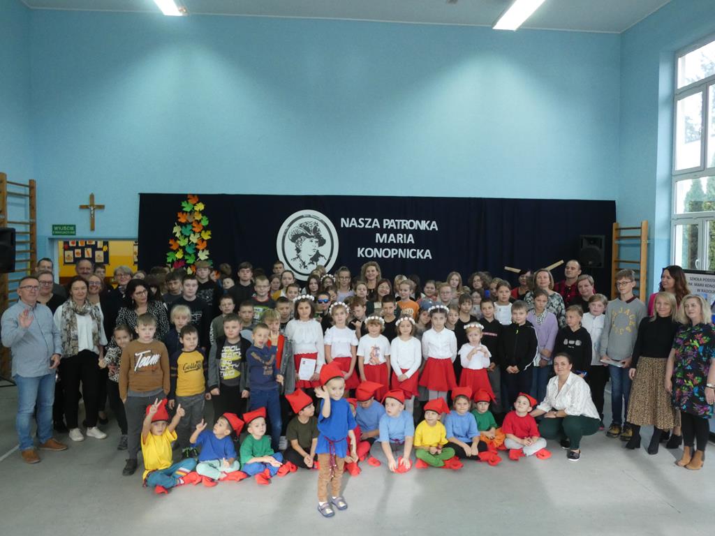 4 listopada 2022 roku uczennice oraz dzieci z oddziałów przedszkolnych z naszej szkoły wzięły udział w Gminnym Przeglądzie Piosenki Patriotycznej organizowanym przez Dom Kultury w Golinie. Patronat honorowy objął Burmistrz Goliny Mirosław Durczyński. Udział dzieci i młodzieży we wszelkich patriotycznych wydarzeniach pomaga przybliżyć znaczenie słowa – Ojczyzna, patriotyzm. To dobra okazja do nauki szacunku do historii oraz wzmacniania narodowej tożsamości. Pozwala to na stawianie małych kroków w kształtowaniu dumy narodowej i świadomości „bycia Polakiem”.