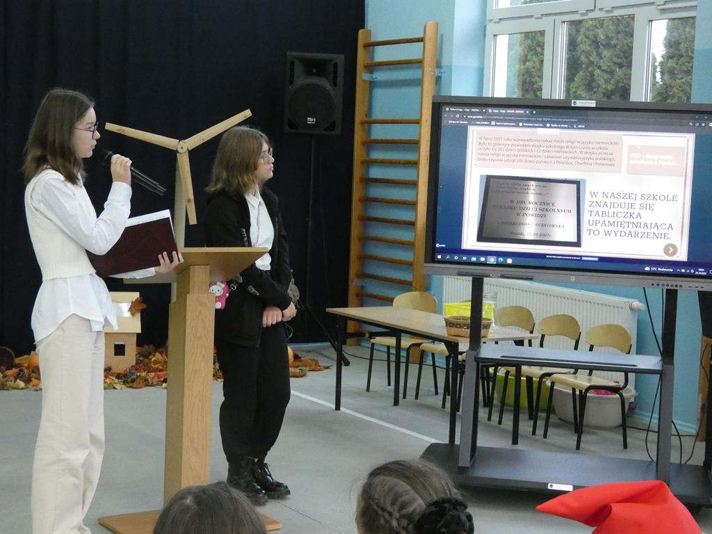 Uczniowie naszej szkoły wprowadzili gości w tajniki historii Szkoły Podstawowej w Radolinie oraz zaprezentowali się podczas występów do wybranych utworów Marii Konopnickiej. Z uwagą wysłuchali również prezentacji dotyczącej historii Zespołu Szkolno – Przedszkolnego z Powidza.