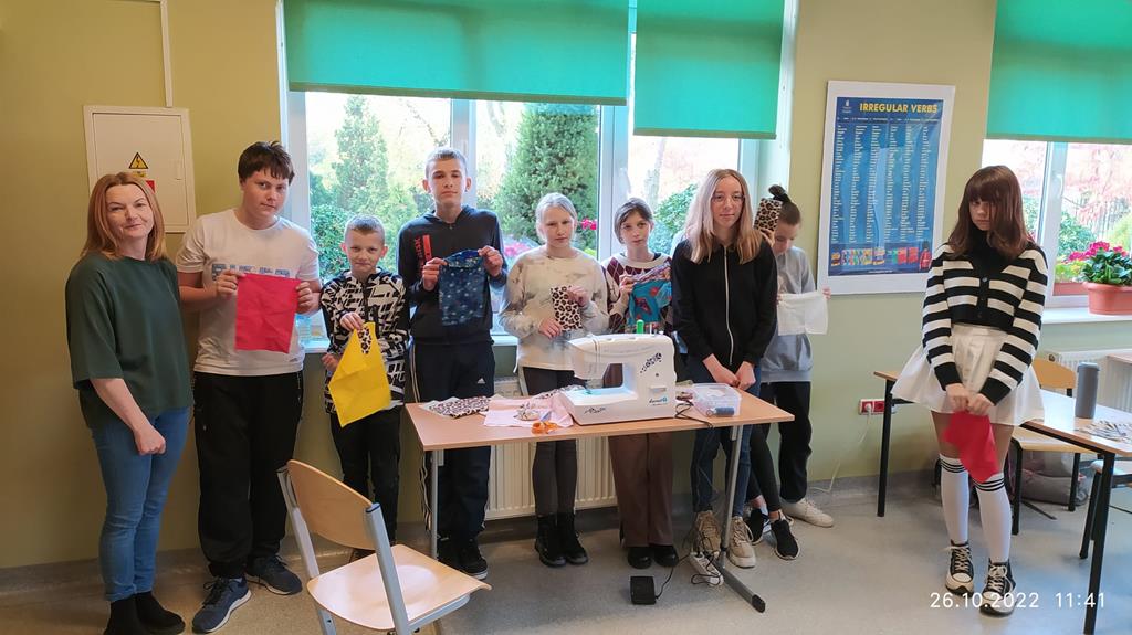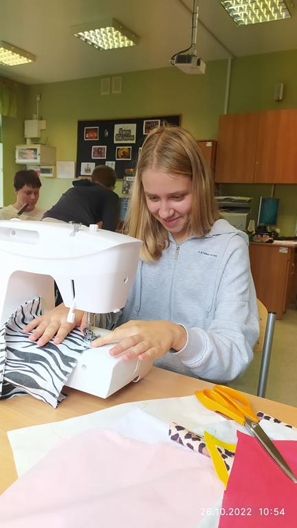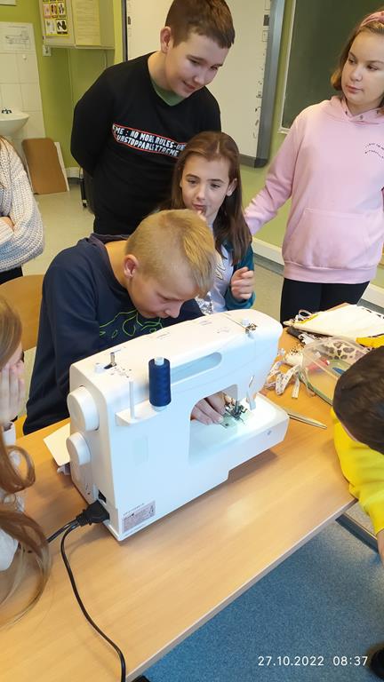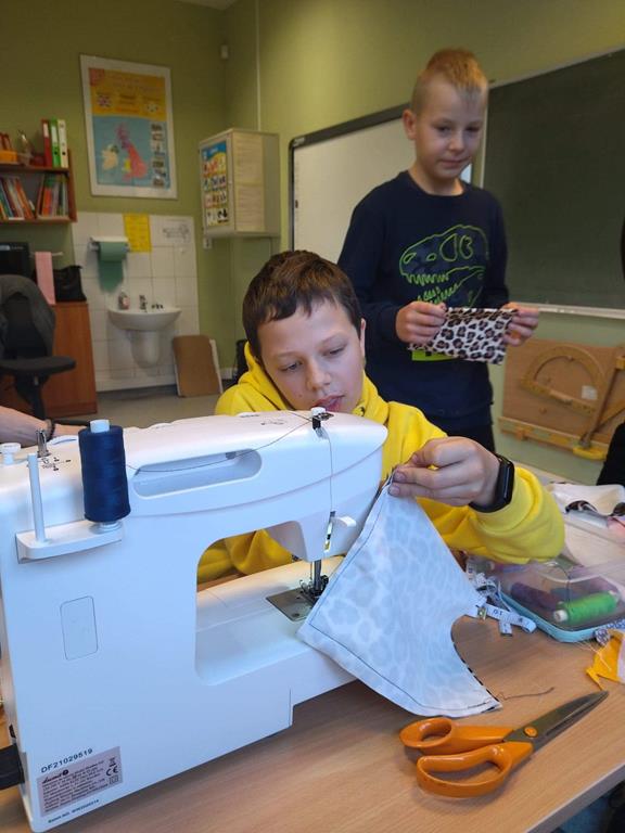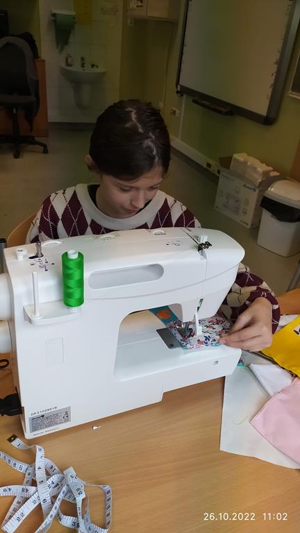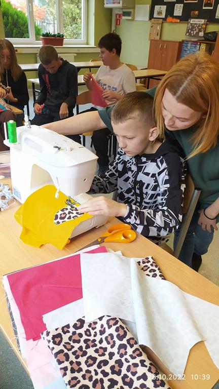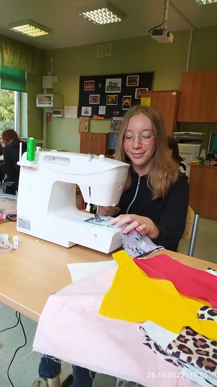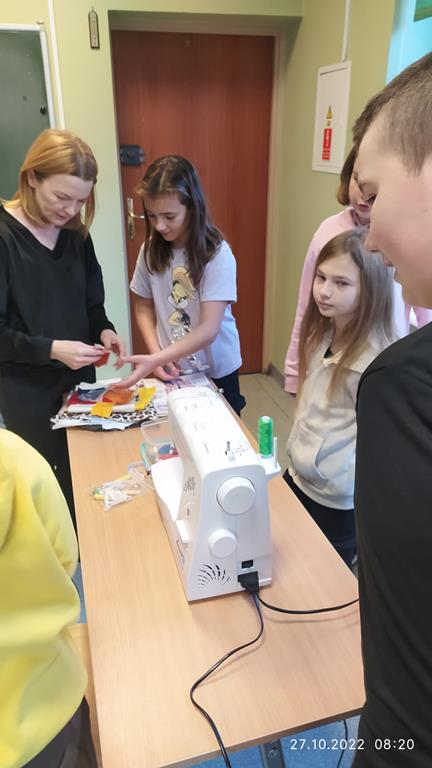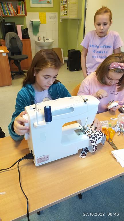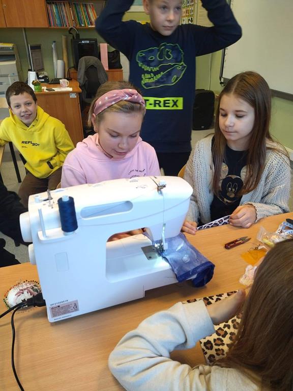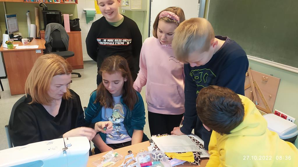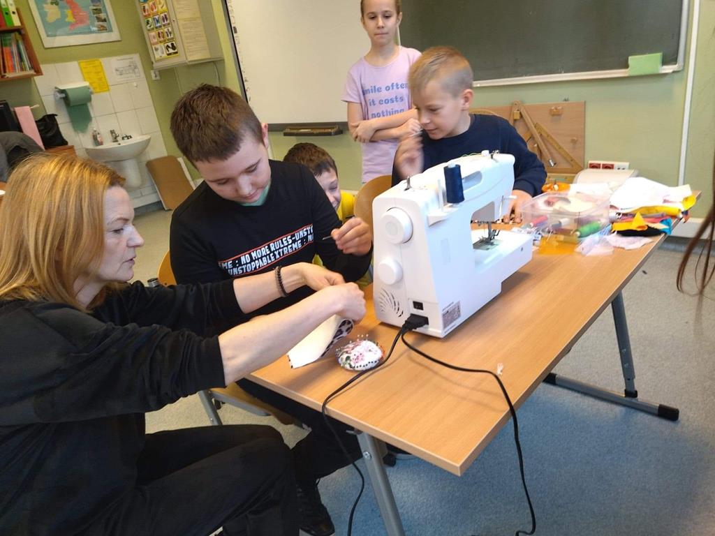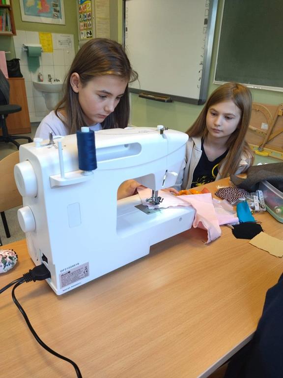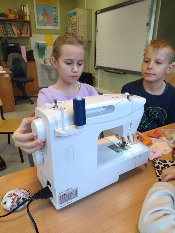 W dniach 26-27.10.2022 na lekcjach techniki w klasie V i VI gościliśmy krawcową, Panią Renatę Gomulską. Uczniowe zapoznani zostali z różnymi rodzajami materiałów oraz podstawowymi przyborami potrzebnymi w codziennej pracy krawcowej. Pani Gomulska uczyła obsługi maszyny do szycia, która zakupiona została w ramach programu Laboratoria Przyszłości. Uczniowie z ogromnym zaangażowaniem próbowali swoich sił w szyciu na maszynie.