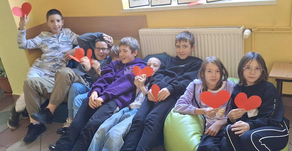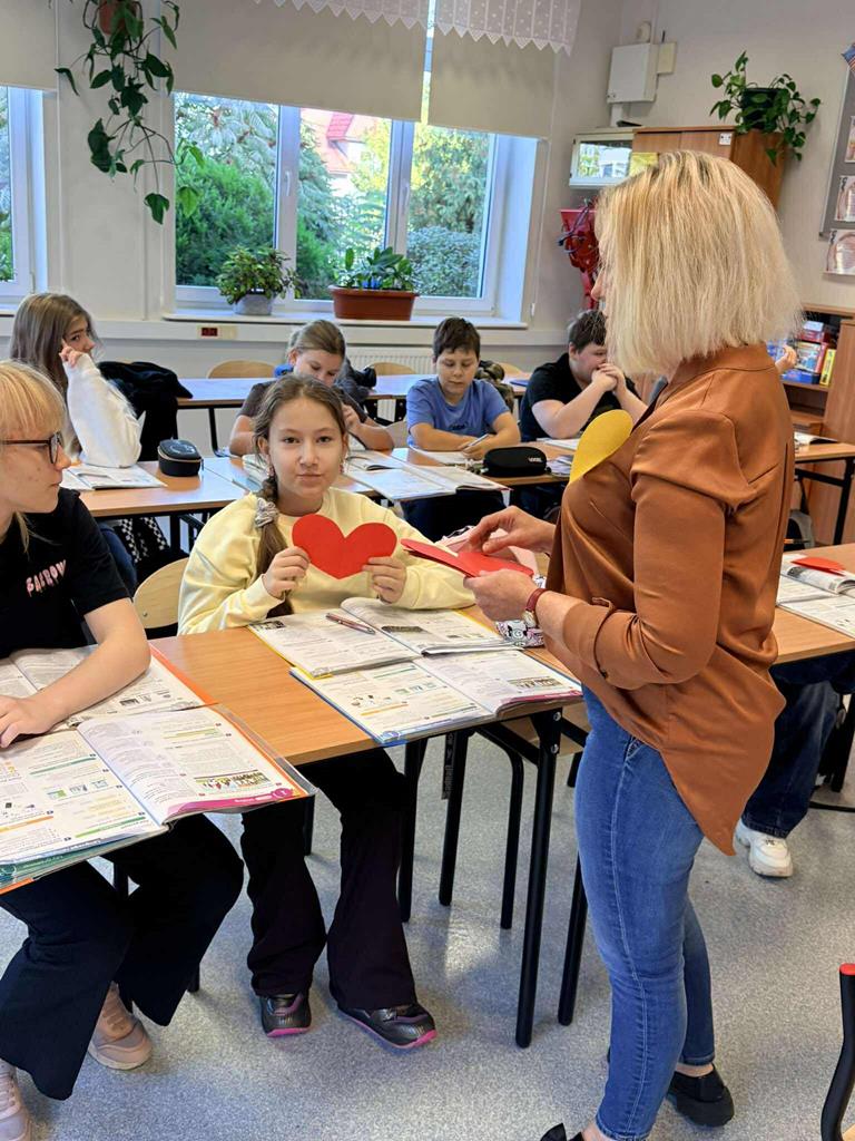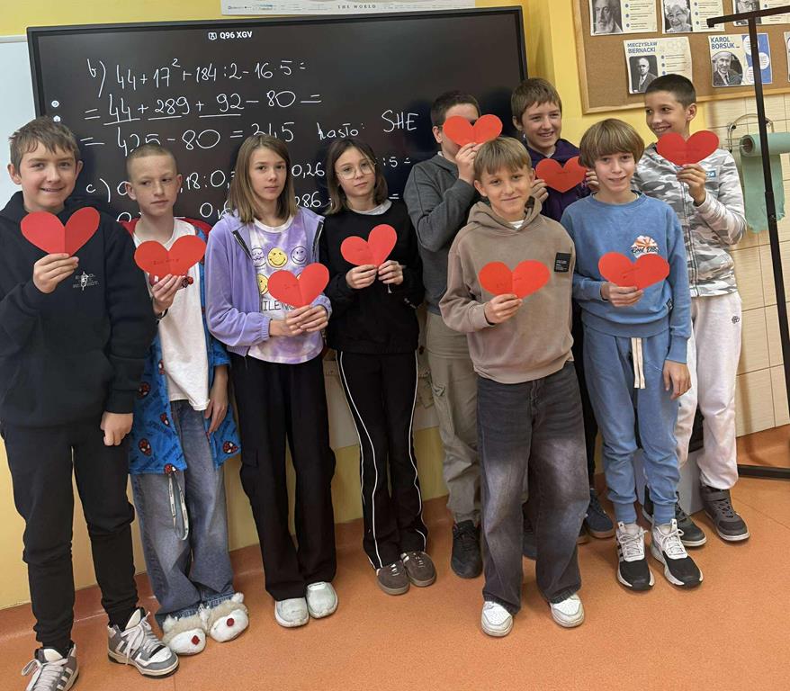 Zwieńczeniem całego tygodnia było dzisiejsze Święto Przyjaźni, które podkreślało to, co najważniejsze w relacjach rówieśniczych – zaufanie, wzajemną pomoc i radość ze wspólnego bycia razem. Na korytarzach pojawiły się żółte i czerwone serduszka promujące przyjaźń, a uczniowie obdarowywali się „życzliwymi karteczkami” – krótkimi wiadomościami pełnymi dobrych słów. W klasach odbywały się zabawy i zadania wzmacniające więzi.