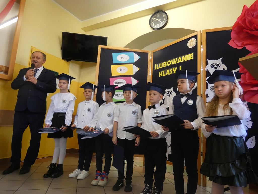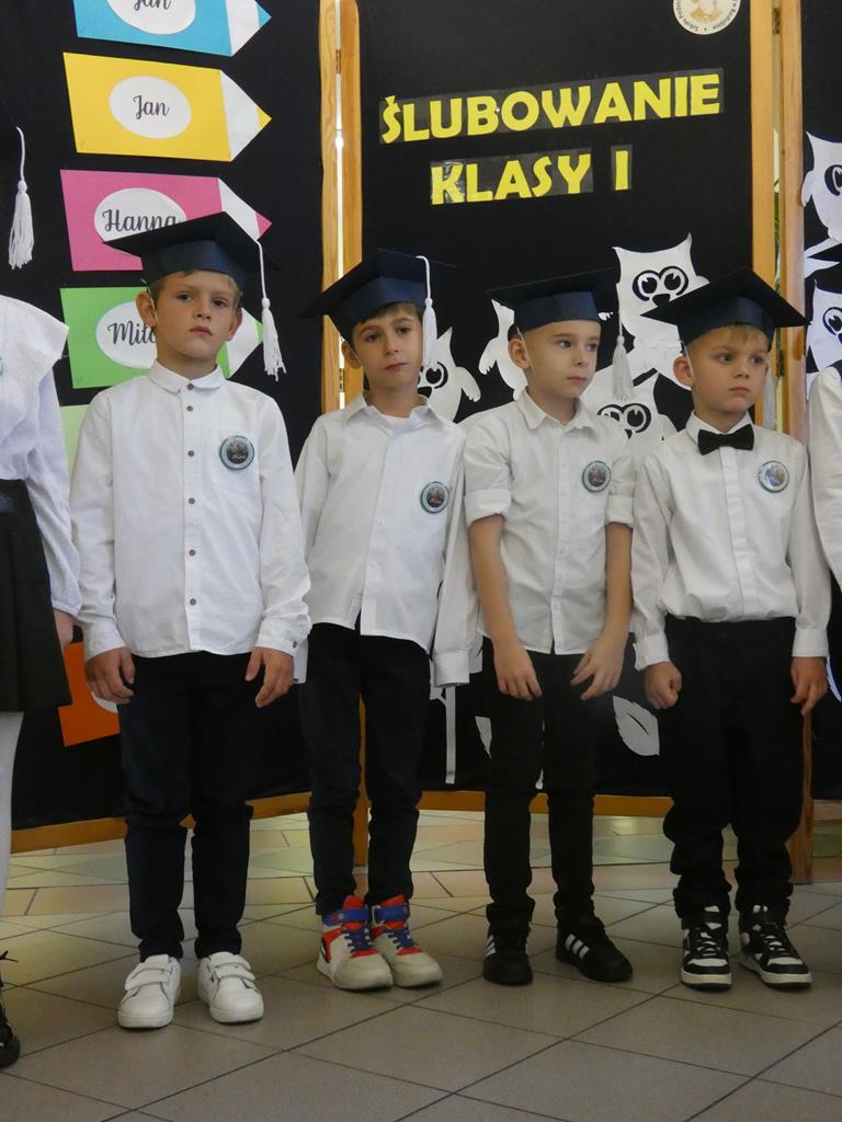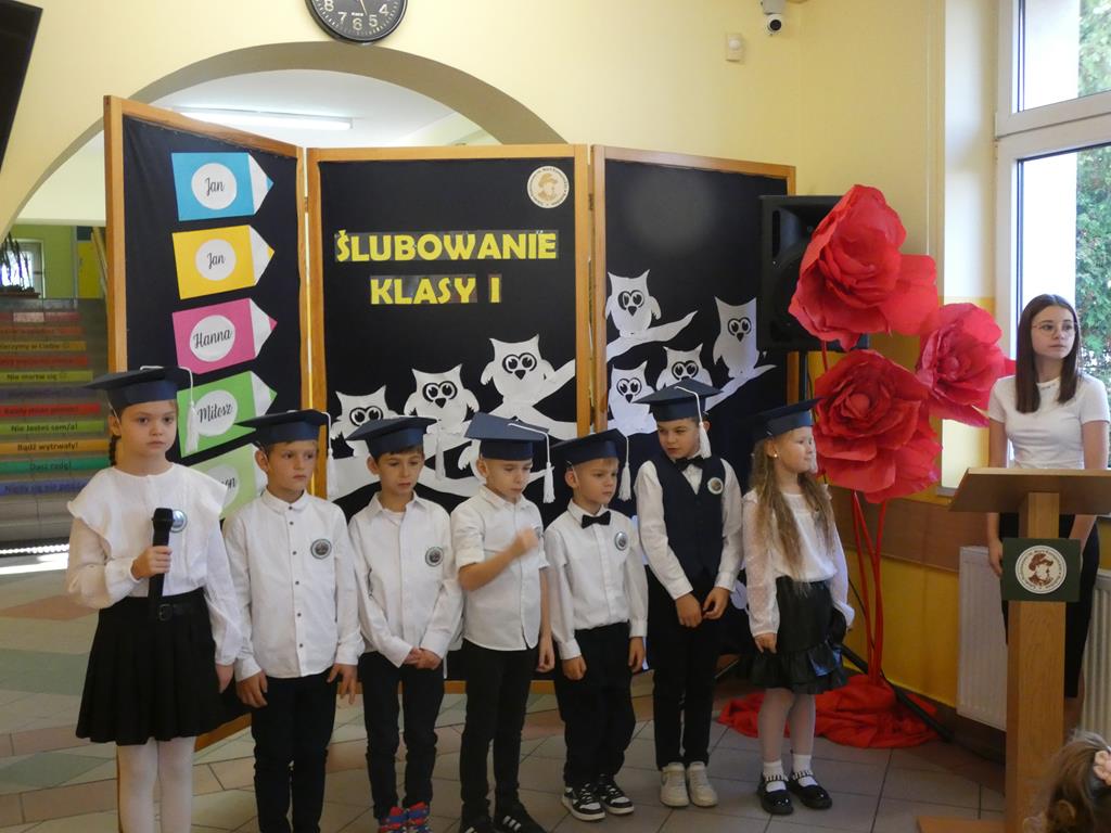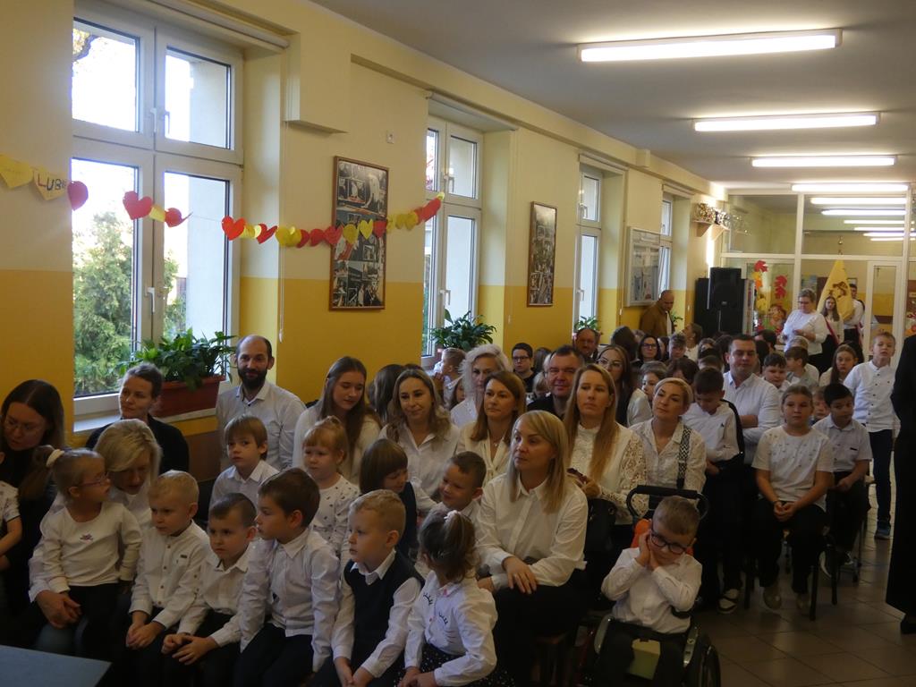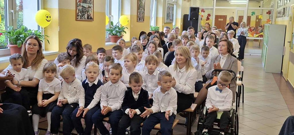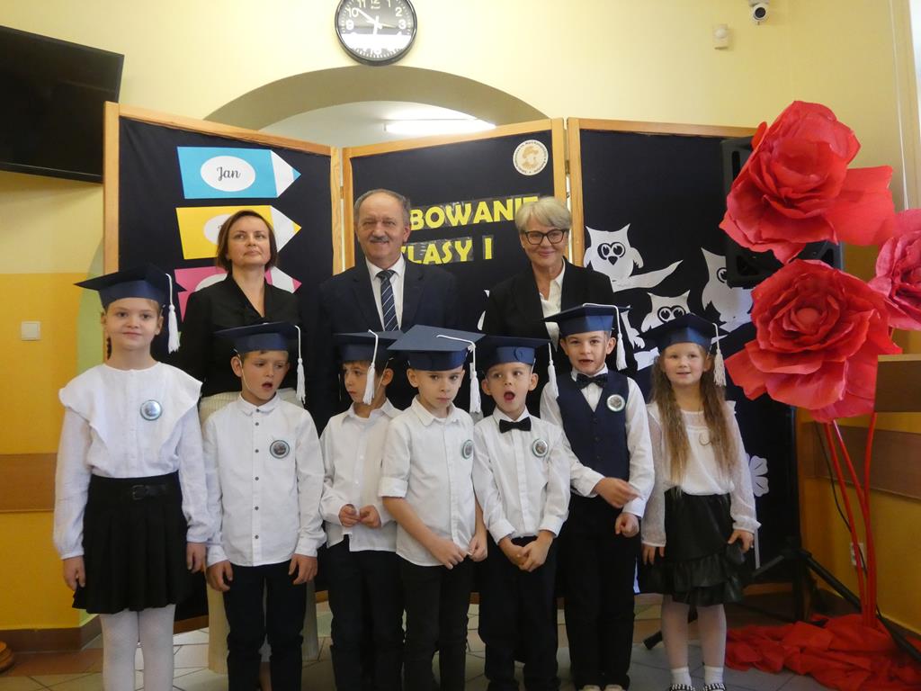 Uroczystość zakończyła się wspólną fotografią i słodkim poczęstunkiem pierwszoklasistów z nauczycielami i rodzicami.