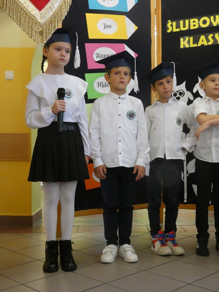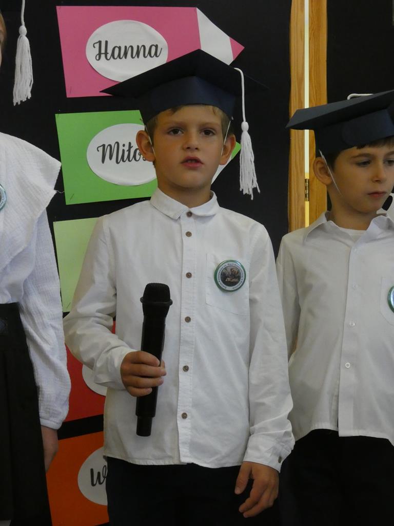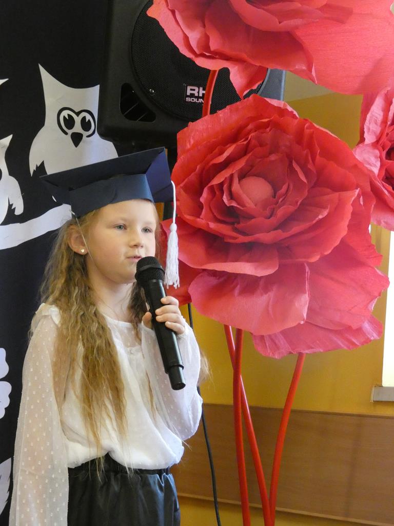 Wzięło w nim udział również czworo uczniów naszej szkoły: z klasy VI Blanka Wilant i Nikodem Urbański recytowali wiersz Marii Konopnickiej ,,Tam, w moim kraju”; z klasy VII – Michał Dryjer zaprezentował ,,Rotę”, a Vanessa Laskowska z klasy VIII wyrecytowała wiersz Tadeusza Kubiaka” ,,Tu wszędzie Polska”.