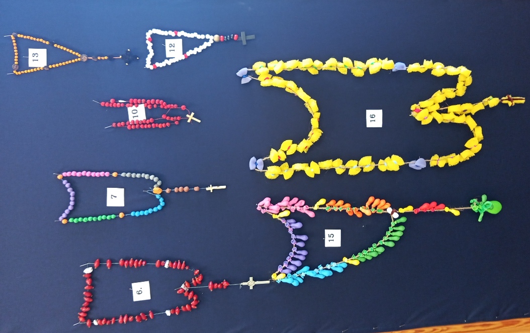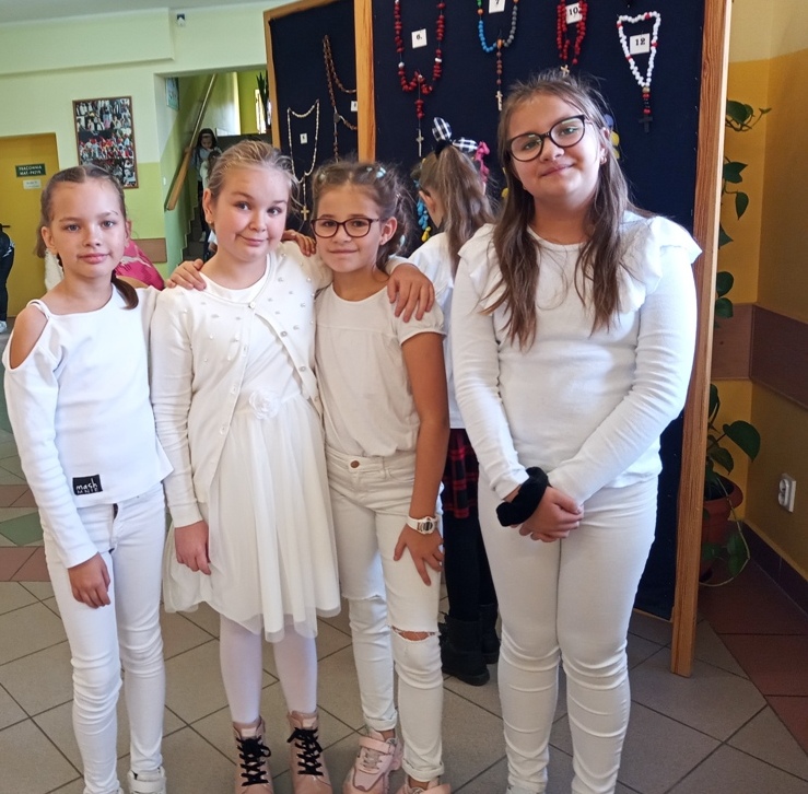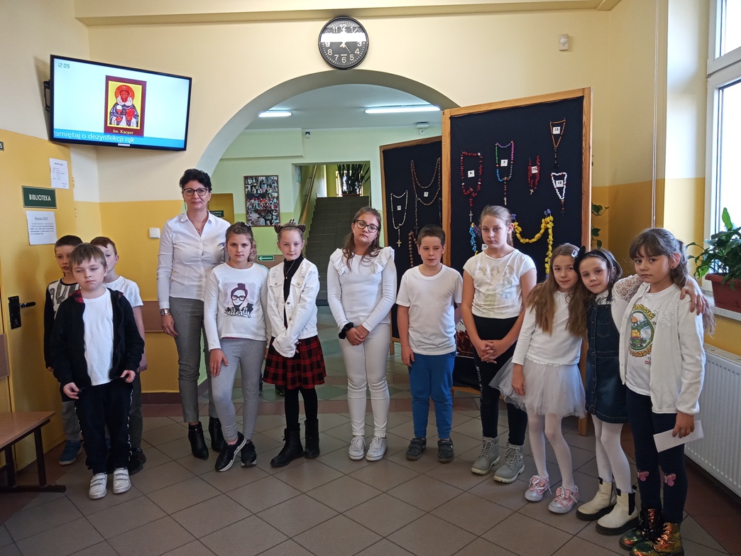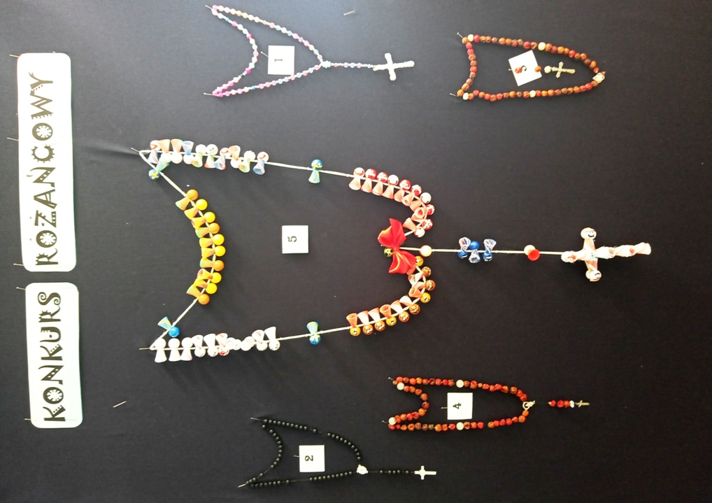W październiku – miesiącu modlitwy różańcowej trwał w naszej szkole konkurs na najładniejszy różaniec, w którym mógł wziąć udział każdy, kto kocha tę modlitwę i kto miał pomysł, aby zaprezentować swoje artystyczne zdolności. Zadanie polegało na wykonaniu dowolną techniką, indywidualnie lub rodzinnie różańca z najróżniejszych materiałów. Do konkursu swoje prace zgłosiło 16 uczestników. Poniższe numery na liście uczestników odpowiadają numerkom przedstawionym na zdjęciach różańcom: 1. Nadia Szczepańska- klasa III 2. Nikodem Urbaniak – klasa II 3. Adam Woźniak- klasa II 4. Piotr Woźniak- „O” 5. Zuzanna Kurleto- klasa V 6. Michalina Szymczak- Klasa III 7. Jan Grzesiak – klasa III 8. Adam Franikowski – klasa II 9. Filip Grzesiak- klasa I 10. Nadia Gołdyn – klasa III 11. Nadia Kasprzyk- klasa III 12. Jakub Szatkowski- klasa II 13. Wiktoria Głowacka- klasa II 14. Maria Hinz- klasa III 15. Sara Karnafel – klasa I 16. Daria Karnafel- klasa V