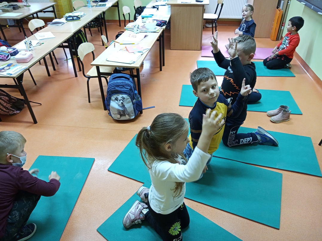 W ostatniej części bloku edukacyjnego w miała miejsce swobodna interpretacja ruchowa opowiadania czytanego przez nauczyciela- dzieci przy cichej muzyce zgodnie z treścią czytanego tekstu zmieniają pozycję i ruchem ją ilustrują. Dzięki temu uczestnicy mogli sami poczuć się jak kiełkujące ziarenko.