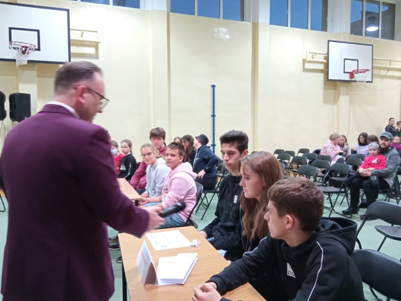 Miło nam poinformować, że podczas „Nocy Zawodowców” uczniowie klasy VIII wzięli udział w pierwszym, międzyszkolnym Konkursie „Koło Fortuny Zawodowców”. Naszą szkołę reprezentowała drużyna „Zawodowców” w składzie: Michalina Kurleto, Piotr Smuśkiewicz i Dominik Czerniak, którzy rywalizując z drużynami z innych szkół wykazali się ogromną wiedzą z zakresu zawodów i kompetencji przyszłości zdobywając II miejsce konkursie!