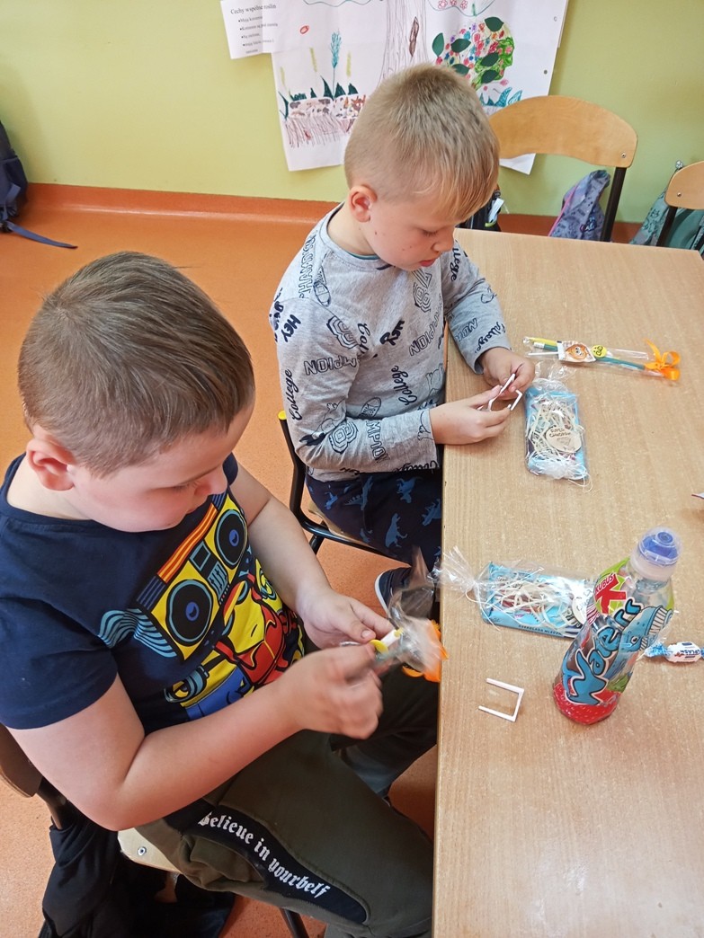 W końcu przeszliśmy do małego klasowego laboratorium, gdzie poznawaliśmy właściwości gleby. Mając do dyspozycji ziemię, piasek, lupy łyżki, wodę i filtry uczniowie mogli samodzielnie badać obecności organizmów żywych i szczątków roślinnych w ziemi i piasku, określić kolor gleby i piasku oraz sprawdzić, z której próbki woda szybciej przecieknie, jaki ma wtedy kolor, w którym słoiku zebrało się jej więcej. Dzieci z pomocą nauczyciela sformułowały wnioski ze swoich obserwacji i zabrały się za przygotowanie uprawy doświadczalnej. W przyniesionych do szkoły słoikach z ziemią i piaskiem zasiały w nich nasiona owsa i podlały. Z pomocą nauczyciela oznakowały swoje hodowle i postawiły słoiki w dobrze oświetlonym miejscu, aby poczekać na efekty, w którym podłożu lepiej urosną roślinki.