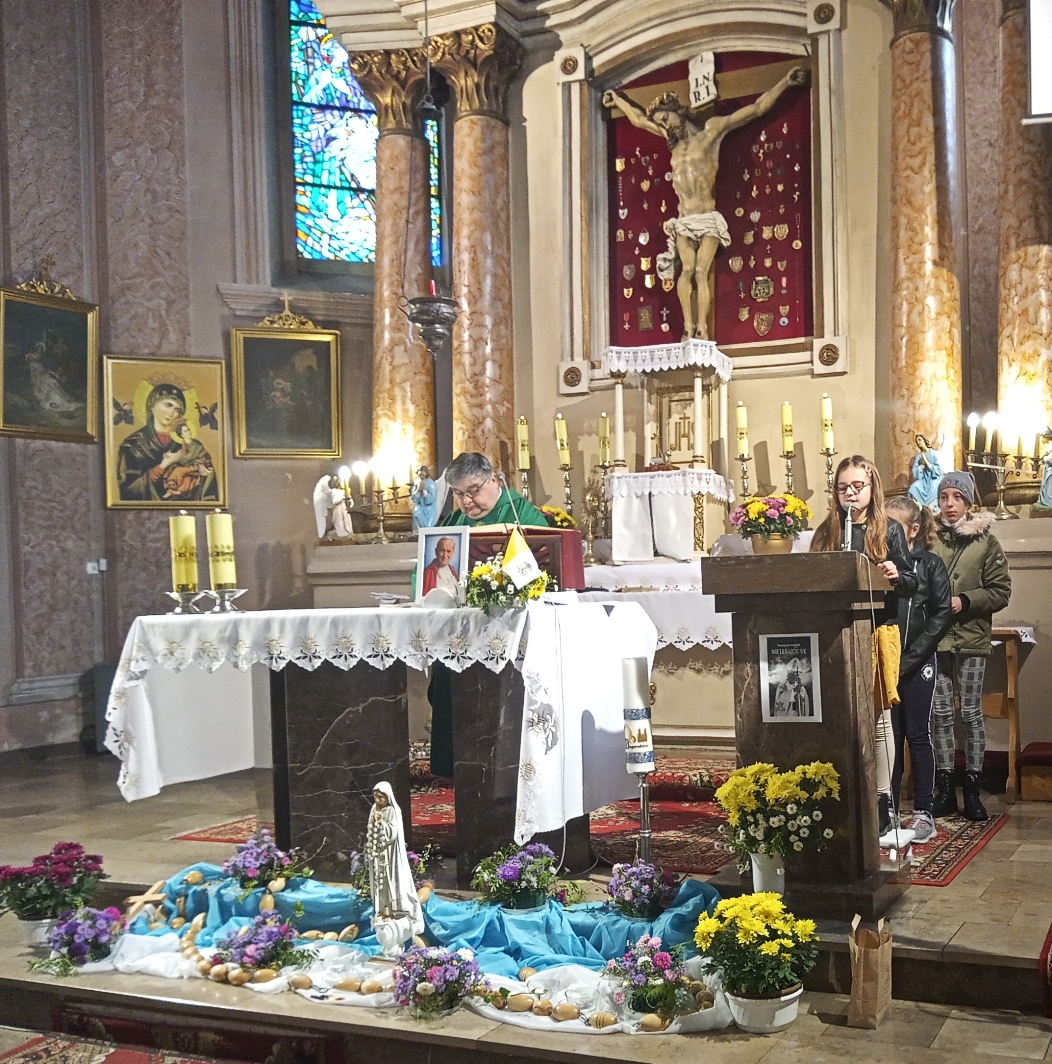 Uczniowie z naszej szkoły również brali udział w obchodach tego dnia. Dziewczynki z klasy IV/V pomogły w oprawie liturgii Mszy Świętej oraz w corocznej zbiórce pieniędzy przed kościołem, na stypendia edukacyjne dla młodych, zdolnych niezamożnych osób z małych miejscowości. Nowe stypendia można też ufundować wysyłając SMS o treści "STYPENDIA" na nr 74 265.