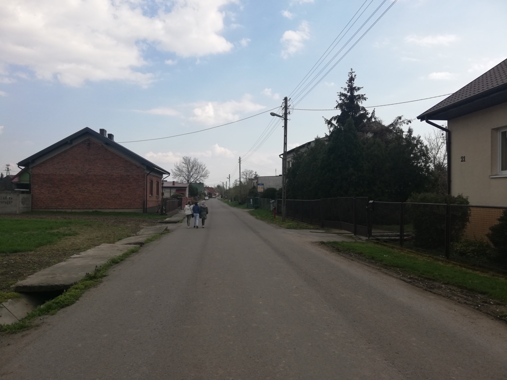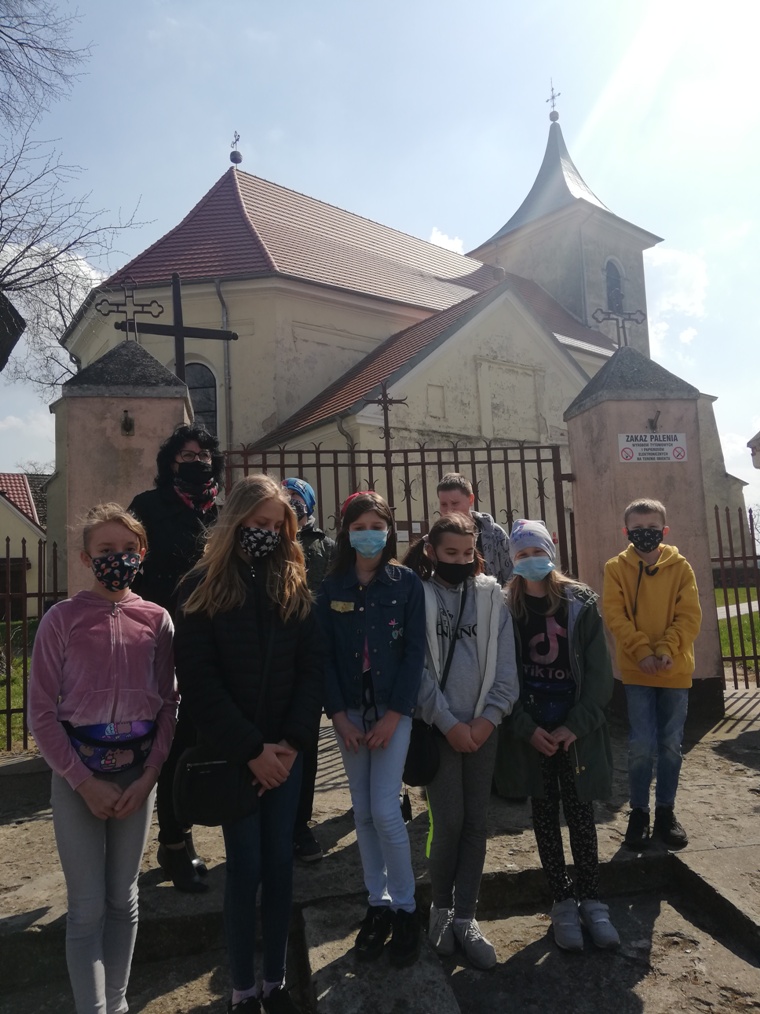 Zobaczyliśmy miejsce, w którym kiedyś mieszkała pani Marianna. W miejscu starego domu stoi teraz piętrowy budynek. Dzisiejsza kaplica pogrzebowa, to dawniejszy Dom Akcji Katolickiej, gdzie był kiedyś teatr wiejski, którego współzałożycielami była pani Marianna Szygenda z mężem. Inicjatorami założenia tego teatru był ówczesny kierownik szkoły Pan Wincenty Banaś, nauczyciel pan Stanisław Maciaszek, ówczesny sołtys wsi pan Edward Czerniak oraz ksiądz Jerzy Łaszewski. Przeszliśmy się potem na cmentarz, gdzie została pochowana pani Marianna Szygenda oraz jej bliscy. Tutaj znajduje się również zabytkowy grób Ksawerego Wyganowskiego majora Wojsk Polskich z lat 1789- 1853. Na cmentarzu spoczywają też księża pracujący w parafii od 1913 roku. Byliśmy też przed budynkiem jednostki Ochotniczej Straży Pożarnej, która powstała w 1957 roku . Natomiast budynek Sali OSP a właściwie Dom Strażaka został oddany do użytku w 1977 r. Tutaj też swoja siedzibę miało Koło Gospodyń Wiejskich, w który działała Pani Marianna.
