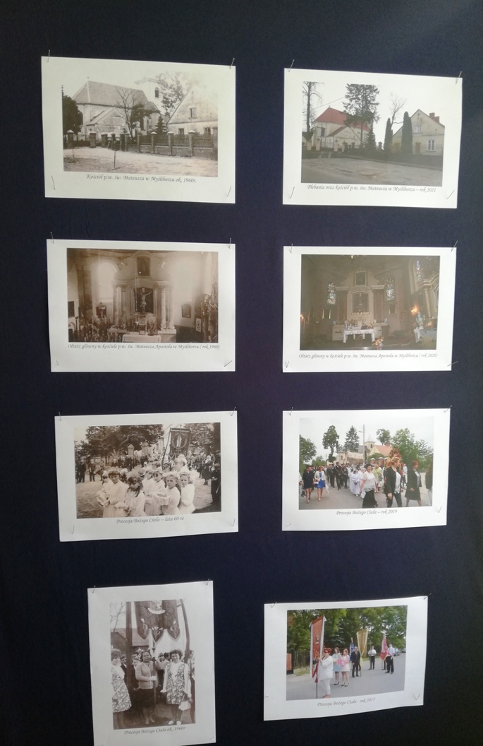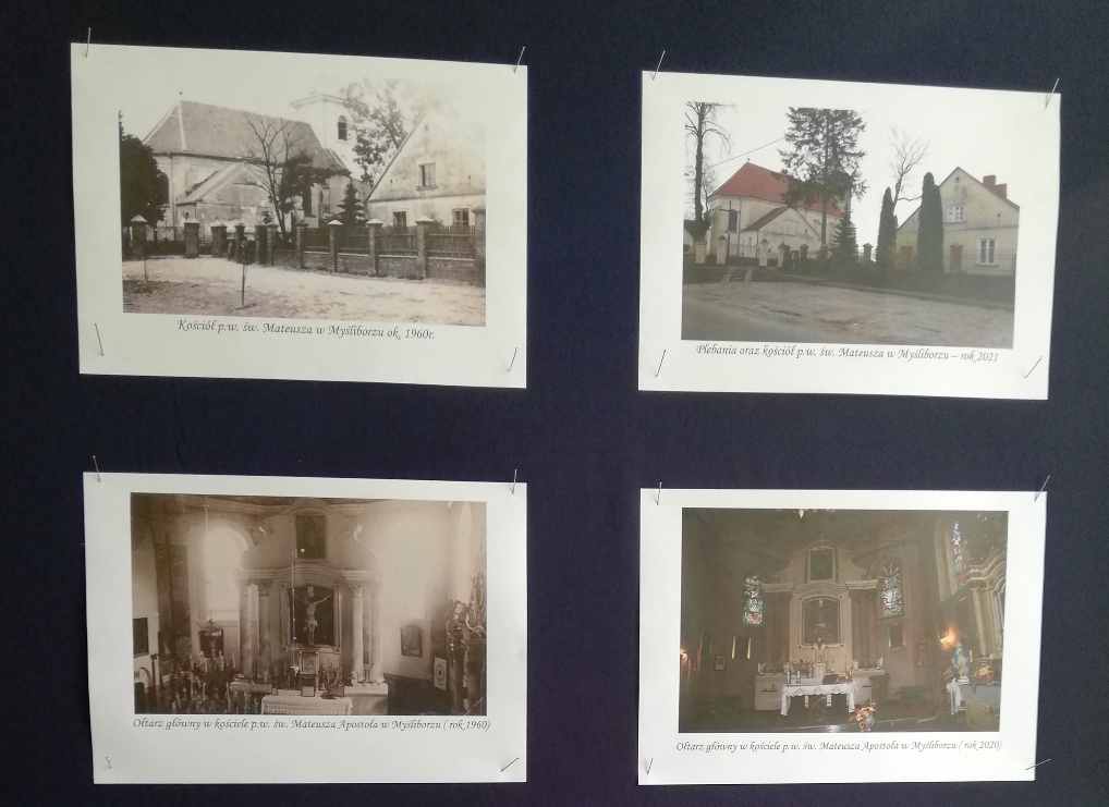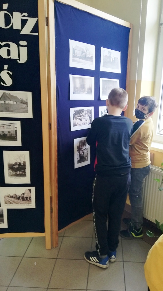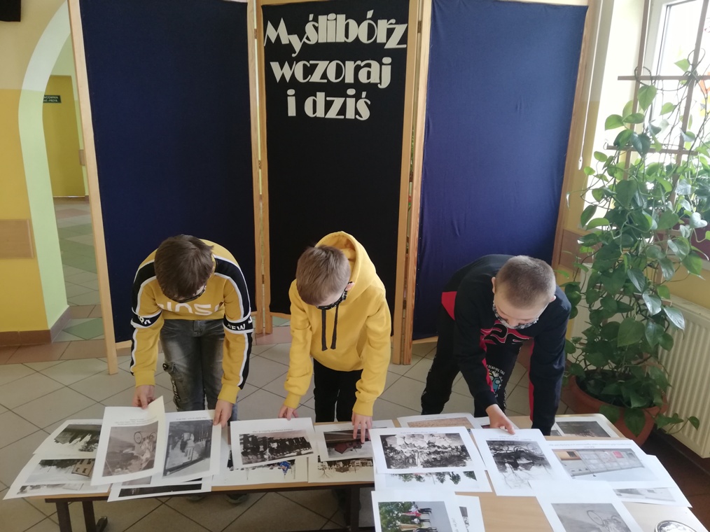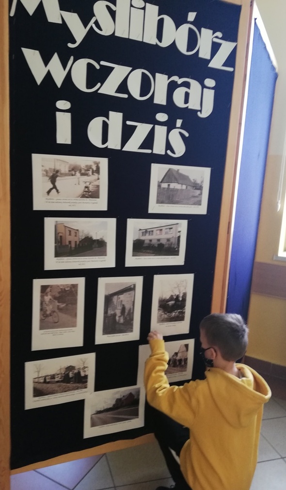 W piątek 23 kwietnia chłopcy z grupy projektowej „ Dzieci Marysi” – Kacper, Kuba i Kaspian, przyjechali do szkoły w celu przygotowania wystawy „ Myślibórz wczoraj i dziś”. To już jedno z końcowym założeń naszego planu w ramach podprojektu Cyfrowej Szkoły Wielkopolski: „Moja babcia zwykła czy niezwykła”. Do przygotowania wystawy wykorzystaliśmy przekazane nam od naszych rozmówców stare fotografie Myśliborza oraz jego mieszkańców, nowe zdjęcia wykonane podczas naszego ostatniego spaceru po Myśliborzu, oraz zdjęcia pochodzące z kroniki parafii Myślibórz prowadzonej przez panią katechetkę Barbarę Jarońską.