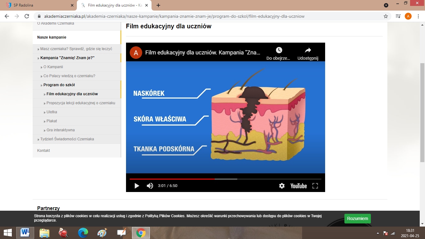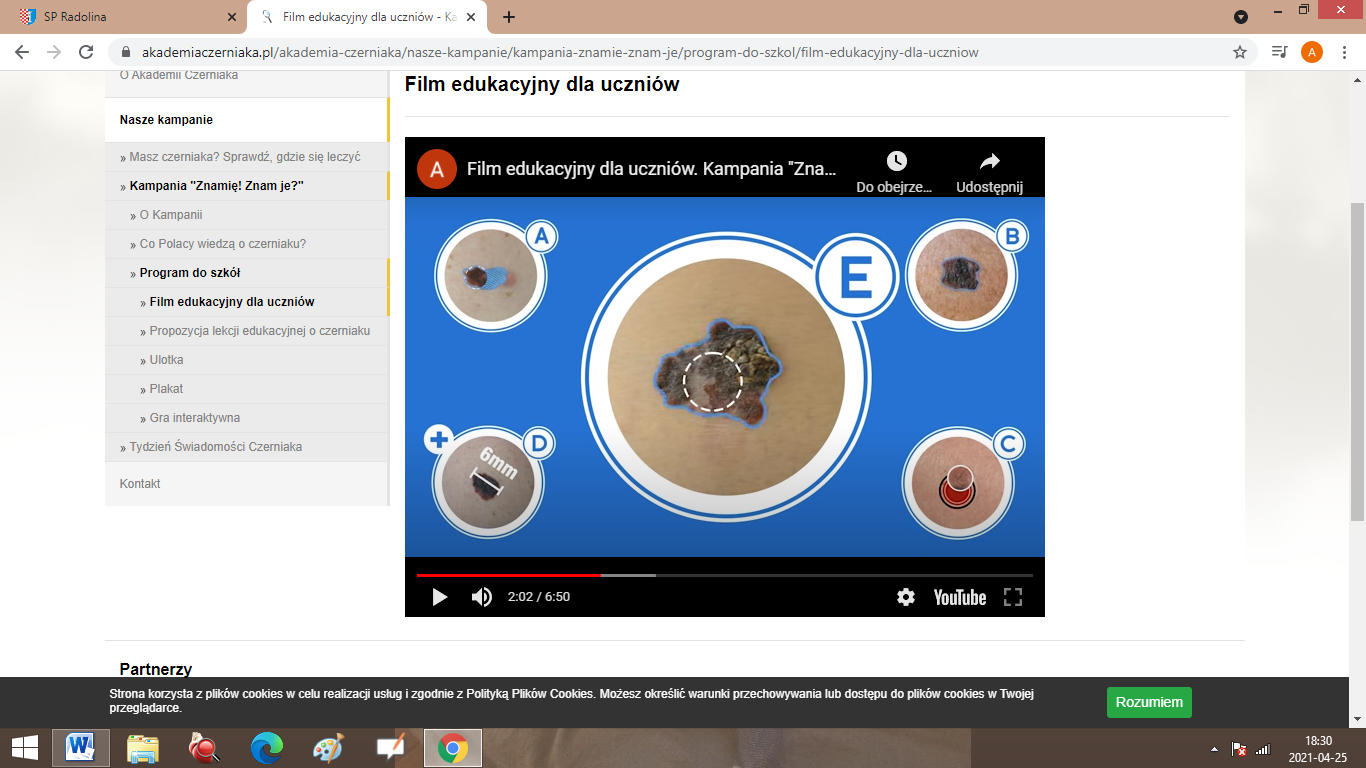 26 kwietnia 2021 uczniowie klas VII i VIII ze Szkoły Podstawowej im. Marii Konopnickiej w Radolinie pod kierunkiem Agnieszki Sołtysiak wzięli udział w kampanii edukacyjnej „Znamię! Znam je?”. Została ona zorganizowana przez sekcję naukową Polskiego Towarzystwa Chirurgów Onkologów. Celem wspomnianej akcji było: upowszechnienie wiedzy na temat czerniaków oraz budowanie właściwych prozdrowotnych postaw młodzieży. Na lekcji biologii została przeprowadzona lekcja edukacyjna o czerniaku, dzieci mogły obejrzeć specjalnie przygotowane filmiki, dzięki, którym dowiedzieli się, jak prawidłowo sprawdzać skórę, nabyli umiejętności rozpoznania czerniaka, poznali czynniki podnoszące ryzyko zachorowania na czerniaka, nauczyli się jak chronić się przed wspomnianą chorobą skóry.