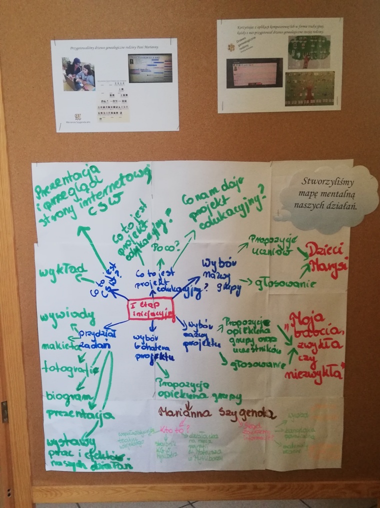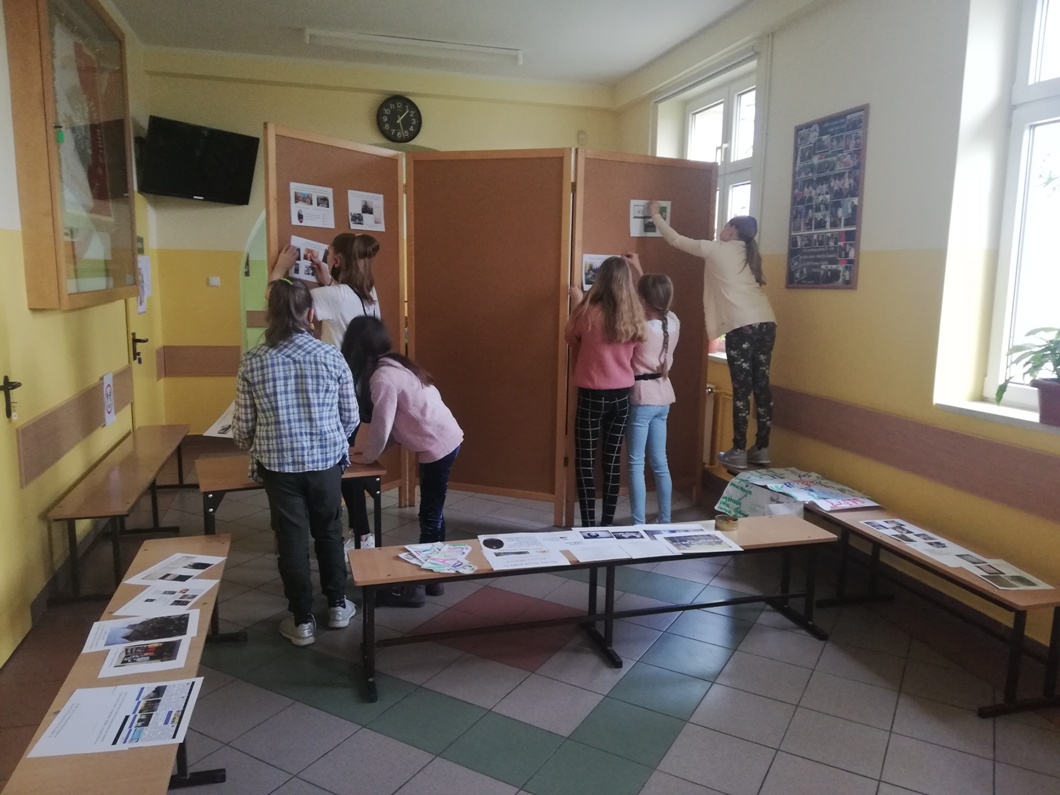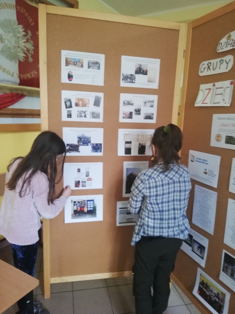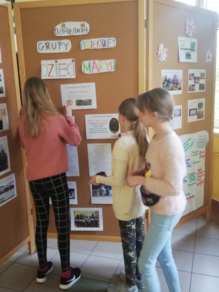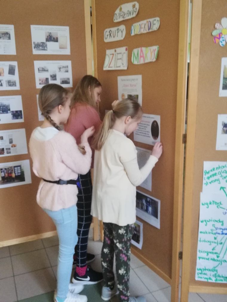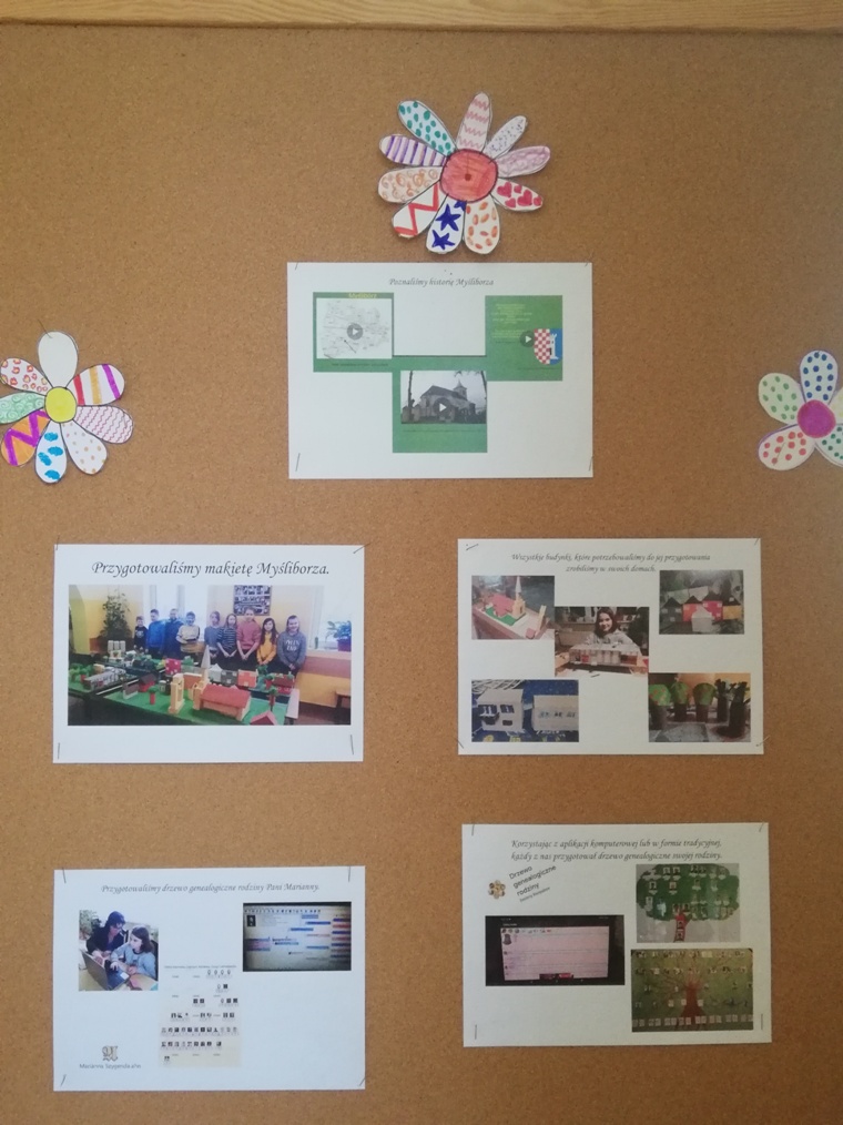 W piątek 30 kwietnia dziewczynki z grupy projektowej „ Dzieci Marysi” przyjechały do szkoły, aby przygotować wystawę na temat działań naszej grupy w ramach projektu Cyfrowa Szkoła Wielkopolska. To już ostatni punkt z planu, który sobie założyliśmy. Uwzględniliśmy w niej informacje oraz zdjęcia ilustrujące wszystkie nasze działania, a było ich sporo: • Zapoznaliśmy się z działaniem Cyfrowej Szkoły Wielkopolski i dowiedzieliśmy się czym jest Cyfrowa Dziecięca Encyklopedia Wielkopolan; • Wybraliśmy nazwę „ Dzieci Marysi” dla naszej grupy , ponieważ patronką naszej szkoły jest Maria Konopnicka i chcieliśmy godnie reprezentować szkołę ,jako jej uczniowie; • Wspólnie wybraliśmy tytuł dla projektu: „Moja babcia – zwykła czy niezwykła?”. Na jego bohaterkę została wybrana Pani Marianna Szygenda- lokalny społecznik, działaczka na rzecz rozwoju kultury na wsi- współzałożycielka teatru; działaczka na rzecz parafii Myślibórz; • Stworzyliśmy pan działań i wybraliśmy osoby odpowiedzialne za jego wykonanie; • Nagraliśmy film z autoprezentacją, aby przedstawić się wszystkim, którzy biorą udział w projekcie Cyfrowej Szkoły Wielkopolski; • Wspólnie ułożyliśmy wiersz do naszej autoprezentacji; • Niestety nasze prace w czasie udziału w projekcie najczęściej odbywały się online, spotykaliśmy się zawsze w piątek od godziny 13:00 do 15:00. W czasie pandemii łączyliśmy się na platformie Microsoft Teams, żeby realizować w takiej formie założenia projektu i zrealizować nasz plan! • Przygotowaliśmy makietę Myśliborza- wszystkie budynki, które potrzebowaliśmy do jej przygotowania zrobiliśmy w swoich domach; • Poznaliśmy historię Myśliborza; • Przeprowadziliśmy wywiady z rodziną Pani Marianny Szygenda: Państwem I. M Szygenda oraz E. Piętka, aby zdobyć cenne informacje o życiu i działalności bohaterki naszego projektu. Z ks.prał. Zbigniewem Szygendą kontaktowaliśmy się telefonicznie i pocztą elektroniczną; • Rozmawialiśmy także z Sołtysem wsi Myślibórz – Panią Małgorzatą Czerniak oraz z przewodniczącą KGW w Myśliborzu-Panią Jadwigą Maciejewską; • pozyskaliśmy wiele fotografii związanych z działalnością pani Marianny oraz stare fotografie Myśliborza; • Dzięki uprzejmości księdza proboszcza Andrzeja Czubaszewskiego pozyskaliśmy dane z archiwum Parafialnego; • Byliśmy na cmentarzu, gdzie znajduje się grób Pani Marianny oraz groby jej rodziców oraz bliskich; • Przygotowaliśmy drzewo genealogiczne rodziny Pani Marianny; • Opracowaliśmy biogram pani Marianny Szygenda; • Korzystając z aplikacji komputerowej lub w formie tradycyjnej, każdy z nas przygotował drzewo genealogiczne swojej rodziny; • Otrzymaliśmy tablety oraz materiały biurowe niezbędne do pracy nad projektem; • Wybraliśmy się na spacer po Myśliborzu śladami życia i działalności bohaterki naszego projektu – pani Marianny Szygenda; • Przygotowaliśmy wystawę pt: „ Myślibórz wczoraj i dziś” • Na zakończenie przygotowaliśmy wystawę pt: Działania grupy projektowej „ Dzieci Marysi”; • Wszystkie działania z projektu „ Moja babcia- zwykła czy niezwykła ?” systematycznie umieszczaliśmy na stronie internetowej naszej szkoły.