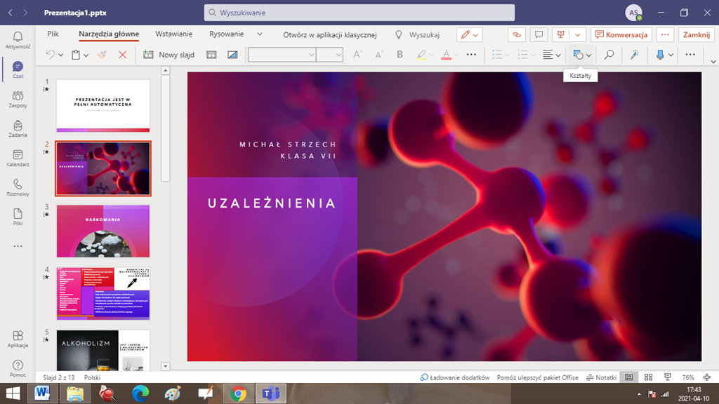 Informujemy, że spotkanie wychowawców klas z rodzicami odbędzie się dnia 27.04.2021 r. na platformie Teams. Rodzice proszeni są o logowanie się z konta swoich dzieci według następującego harmonogramu: godz. 18.00 – Przedszkole i klasa "0" godz. 18.20 – klasa I i klasa VIII godz. 18.40 – klasa II i klasa IV godz. 19.00 – klasa III i klasa VI godz. 19.20 – klasa V i klasa VII Konsultacje indywidualne: Rodzice zainteresowani indywidualnym kontaktem z nauczycielem danego przedmiotu, proszeni są o wcześniejsze ustalenie godziny i formy konsultacji.