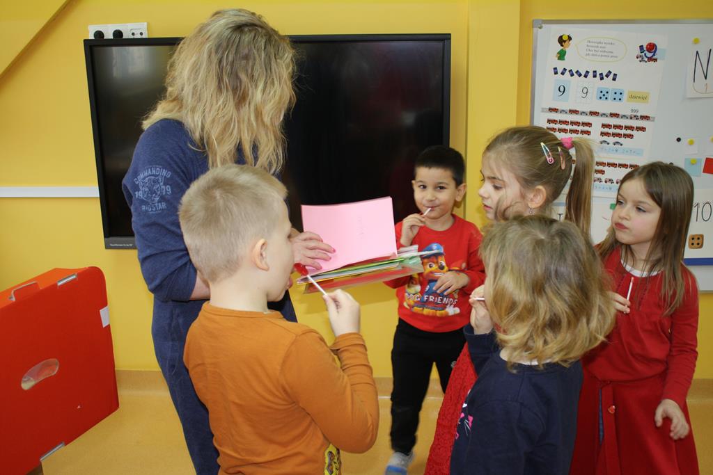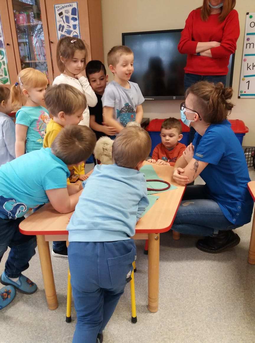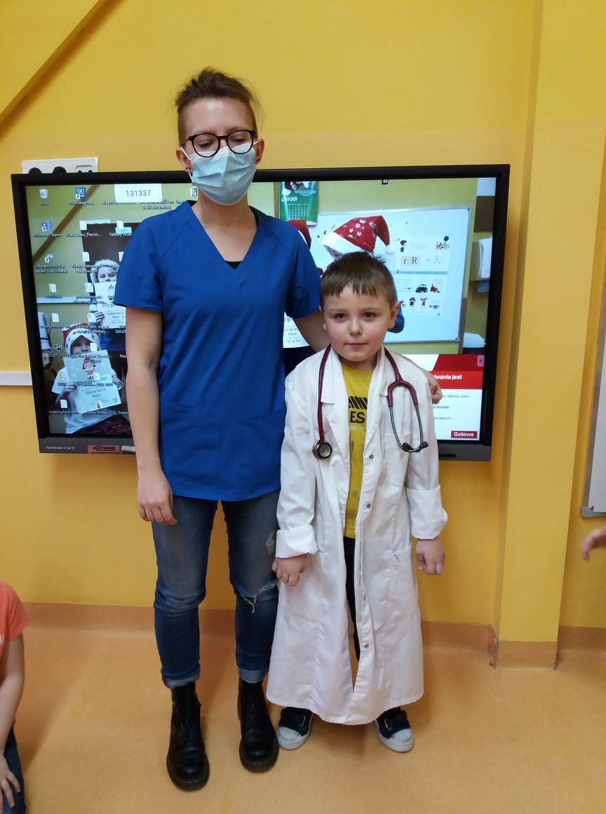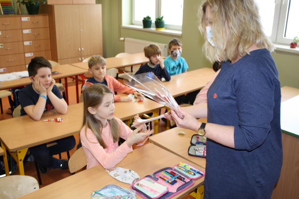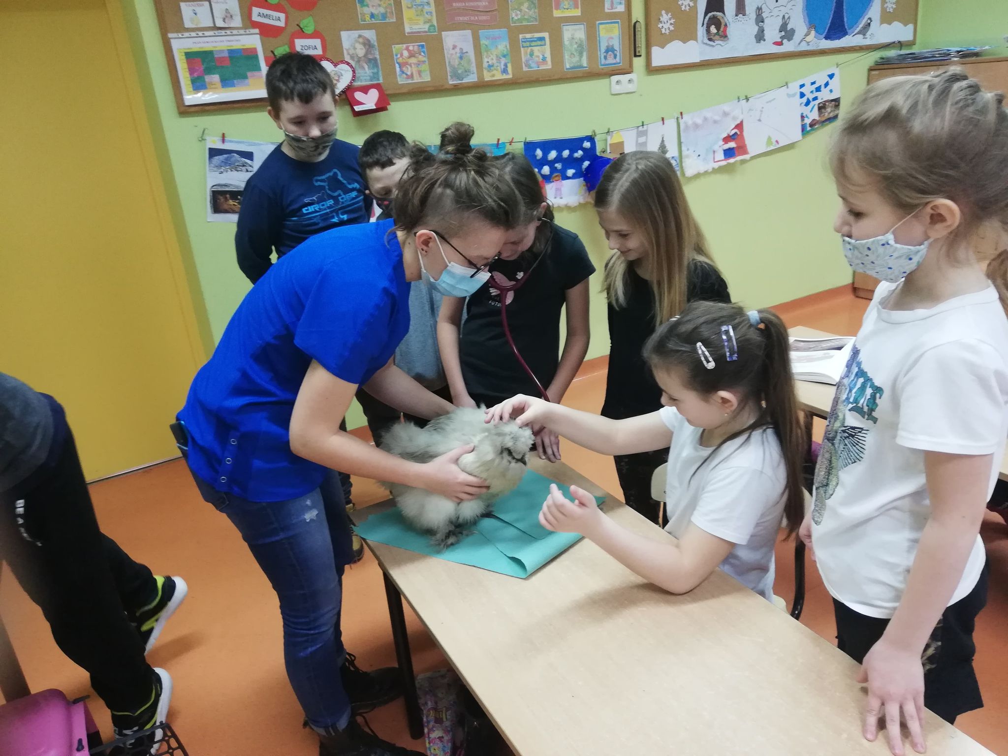 Uczniowie klas I-III i przedszkoli mieli okazję zobaczyć patyczaki. O tym, w jaki sposób hodować patyczaki i zajmować się nimi opowiedziała Pani Agnieszka - studentka medycyny weterynaryjnej. Bo Zippi – to patyczak, ulubieniec Tiga, jednego z bohaterów opowiadań w programie, który zamieszkał w naszej szkole. Dodatkowo uczniowie dowiedzieli się jak dbać o zwierzęta domowe: psy, koty, a także mogli zbadać kurę, usłyszeć jak bije jej serce. Przymierzali również fartuch weterynaryjny i poznali jak działa stetoskop.