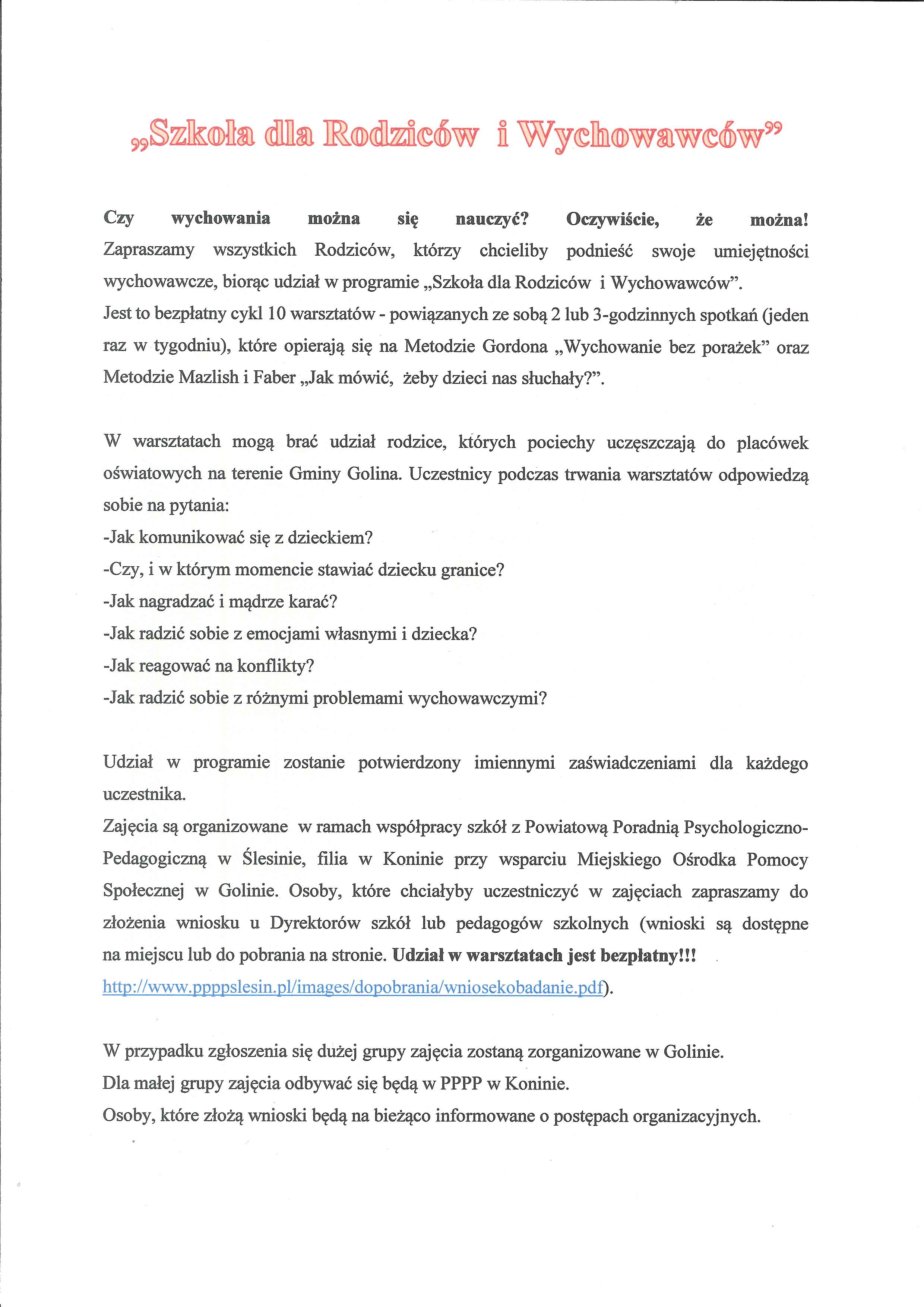 Zachęcamy do zapoznania się z informacjami dotyczącymi programu "Szkoła dla Rodziców i Wychowawców".