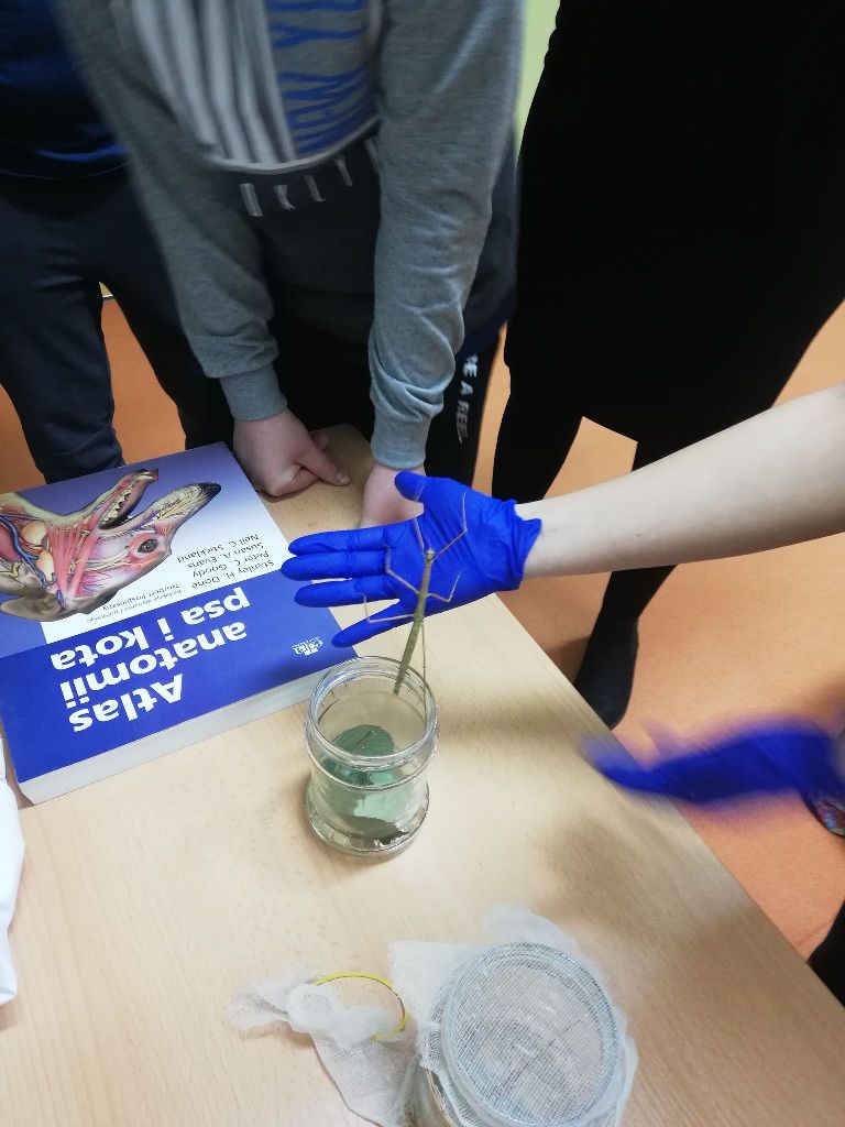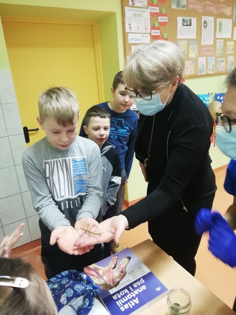 Dzieci brały aktywny udział w spotkaniu, opowiadały o zwierzętach, które mają w domu i zasypywały Panią Agnieszkę pytaniami. Całe spotkanie przebiegło w miłej atmosferze. Pozwoliło uczniom na poznanie szczegółów dotyczących patyczaków i innych owadów, zwierząt oraz ciekawego i odpowiedzialnego zawodu.