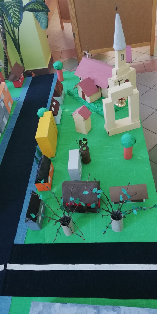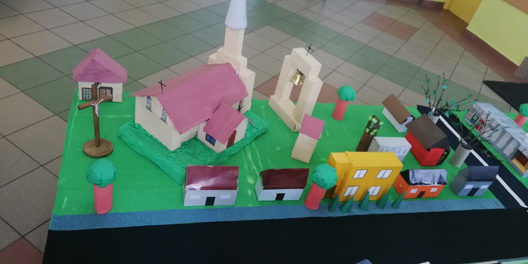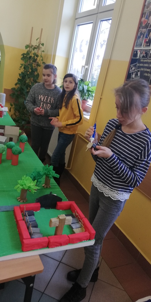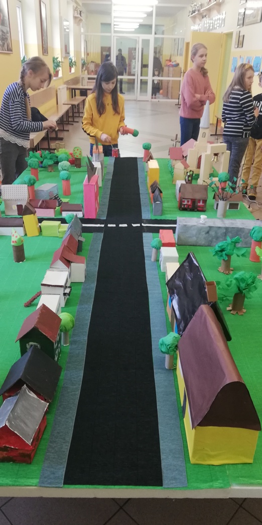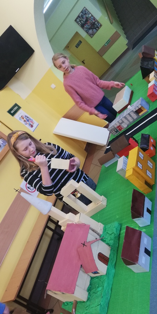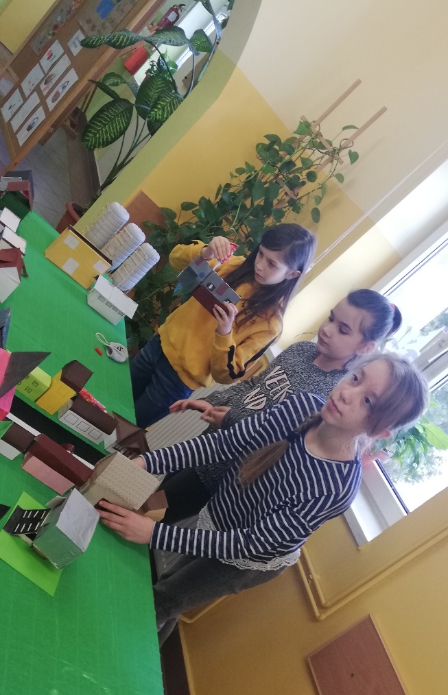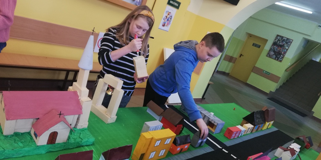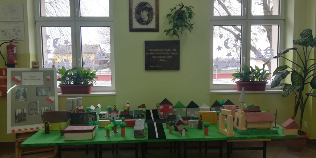 Praca grupy projektowej „ Dzieci Marysi” w styczniu, polegała przede wszystkim nad dokończeniem makiety Myśliborza- miejscowości związanej z życiem i działalnością bohaterki naszego projektu. W pierwszym tygodniu po feriach dzieci pracowały nadal nad domkami i innymi elementami miejscowości.